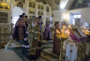 В Неделю 5-ю Великого поста епископ Феоктист совершил Литургию в Алексеевском монастыре