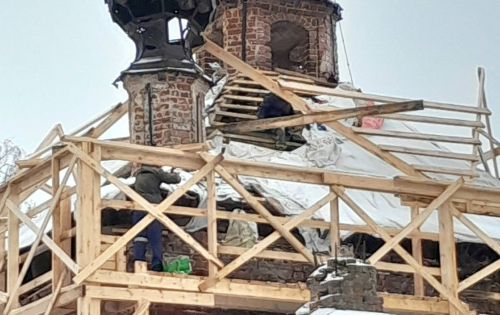ПРОДОЛЖАЮТСЯ ВОССТАНОВИТЕЛЬНЫЕ РАБОТЫ В КРЕСТОВОЗДВИЖЕНСКОМ ХРАМЕ С. СИДОРКОВО (СЕЛИФОНТОВО)