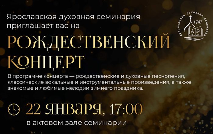 22 января 2026 года в Ярославской духовной семинарии состоится Рождественский концерт. Рождество — это время тишины, в которой особенно ясно звучат слова надежды, благодарности и любви. Всегда хочется подольше сохранить радость праздника Рождества Христова. В этот вечер музыка станет продолжением рождественской радости — спокойной, светлой и внимательной к каждому слушателю. В программе концерта: рождественские и […]