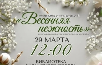 29 марта 2026 года в библиотеке Казанского собора Казанского женского монастыря г. Ярославля пройдет мастер-класс «Весенняя нежность» по составлению композиции из вербы и гипсофилы в корзине. Мастер-класс проведет Инна Бутовецкая, профессиональный флорист. Участники смогут собрать композицию из пушистых веточек вербы и сделать идеальный элемент декора для дома. Предварительная запись: +7(915)505-12-85. Начало в 12.00. Пресс-служба монастыря/Пресс-служба […]