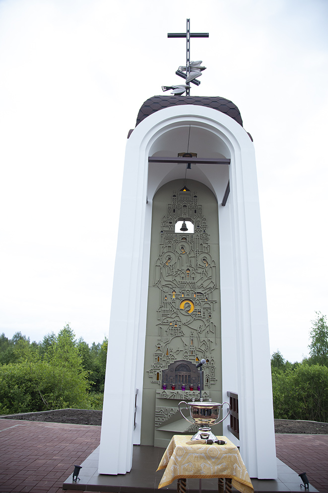 На освящении присутствовал губернатор Ярославской области Михаил Евраев. Часовня создана на средства автономной некоммерческой организации «Эколлайн. Культура и искусство» совместно с Российским государственным академическим театром драмы имени Федора Волкова при поддержке губернатора Ярославской области. Все расходы по проектированию и выполнению строительных работ по благоустройству с организацией подъезда и парковки профинансированы из регионального бюджета. Проект разработали заслуженные художники РФ, члены-корреспонденты РАХ, братья Николай и Михаил Бекетовы.