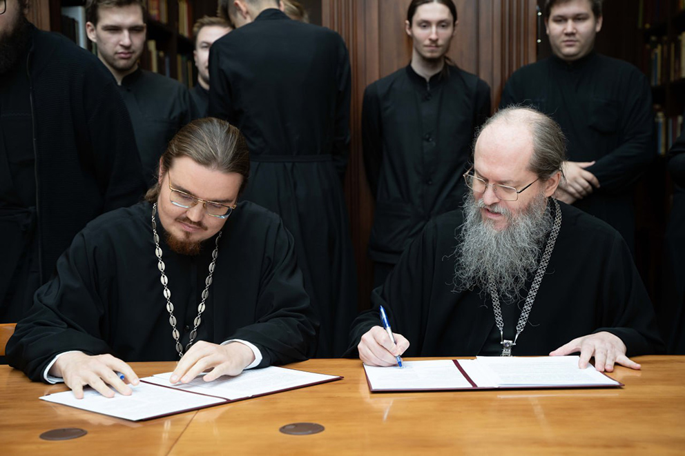 Торжественная церемония подписания документа прошла в библиотеке Сретенской духовной академии.