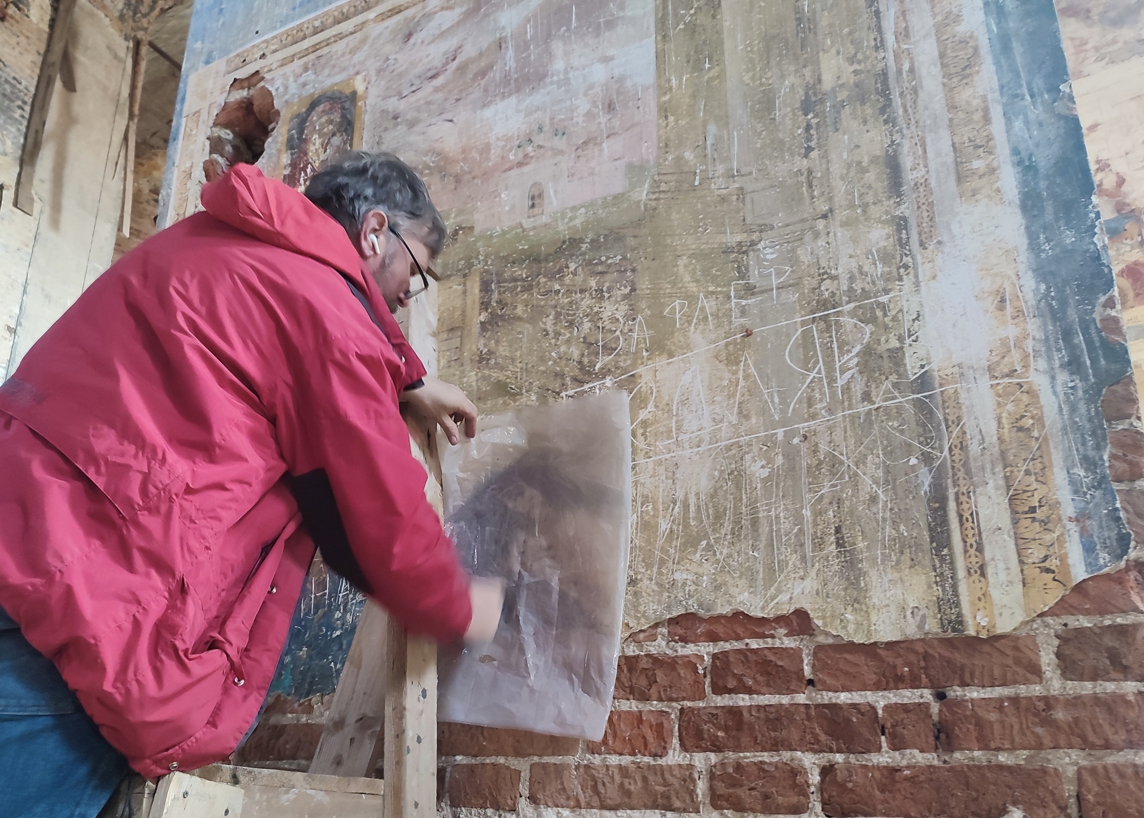 «Мы двигались миллиметр за миллиметром, — говорит Денис Полещук, директор Ярославского центра содействия научной реставрации им. З. В. Полещук. — Сейчас важно посмотреть, как себя эта фреска поведет в холодное время года, учитывая, что храм не отапливается. Если результат будет положительный, приступим к полномасштабным работам».