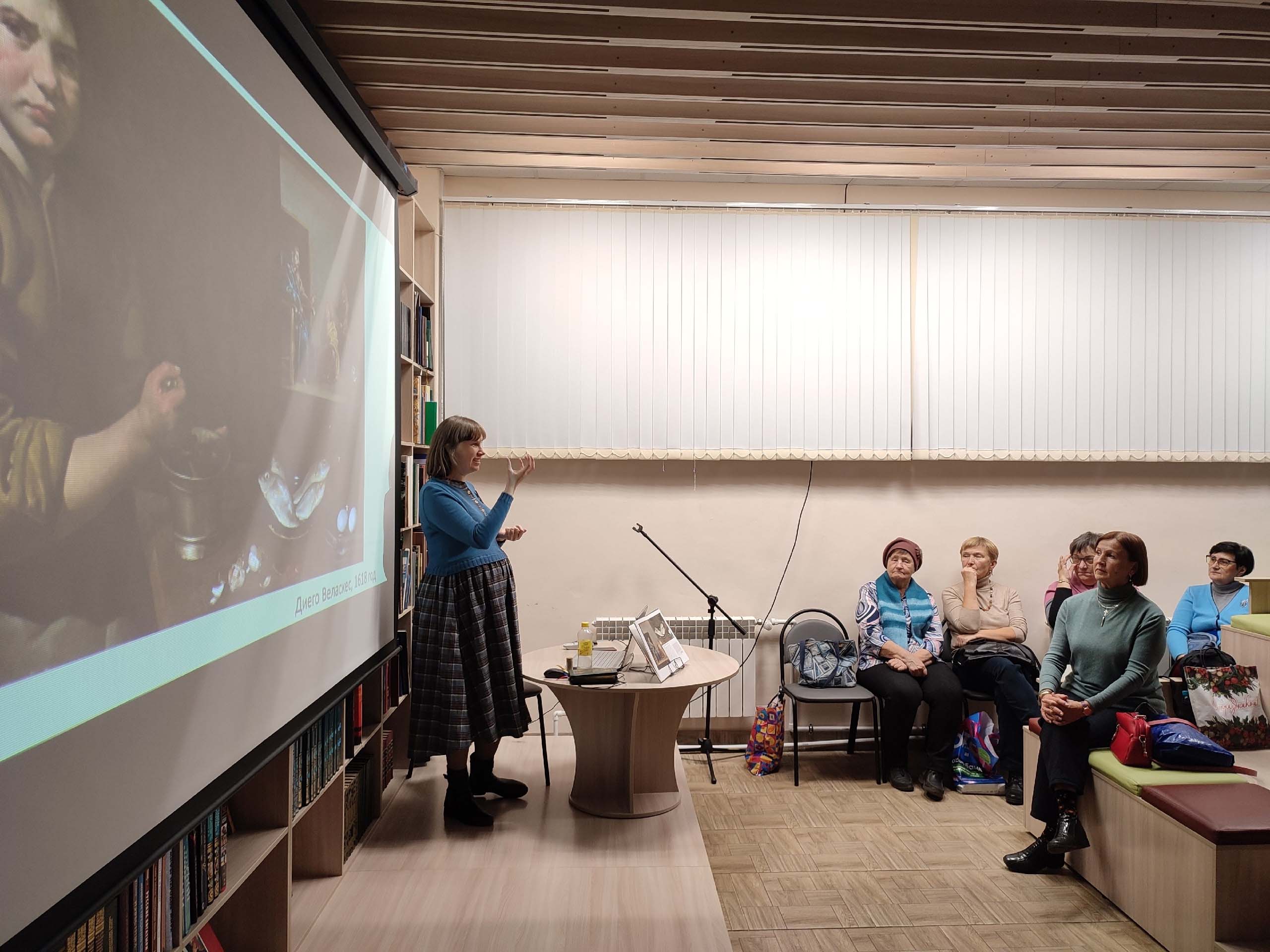 В библиотеке-филиале №15 им. М. С. Петровых прошла открытая лекция «Лазаревы сестры». Предметом разговора на встрече стала картина Диего Веласкеса «Христос в доме Марфы и Марии».