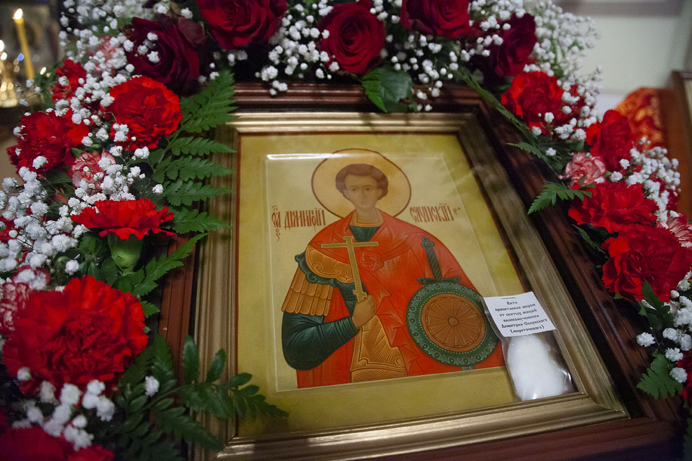Великомученик Димитрий родился в городе Солуни в Греции (ныне – Салоники) в правление царей-богоборцев Диоклетиана и Максимиана. Его родители были христианами и тайно крестили своего сына еще в младенчестве. После смерти отца, римского проконсула, Димитрий занял его должность. По должности великомученик должен был защищать область от внешних врагов, но от него потребовали и истребления христиан. Но Димитрий не стал этого делать, и император заключил его в тюрьму. Святого убили утром в темнице, пронзив его, стоящего на молитве, копьями. В правление императора Константина Великого (324-337 гг.) над могилой великомученика Димитрия воздвигли храм, в котором совершалось множество чудес и исцелений.
