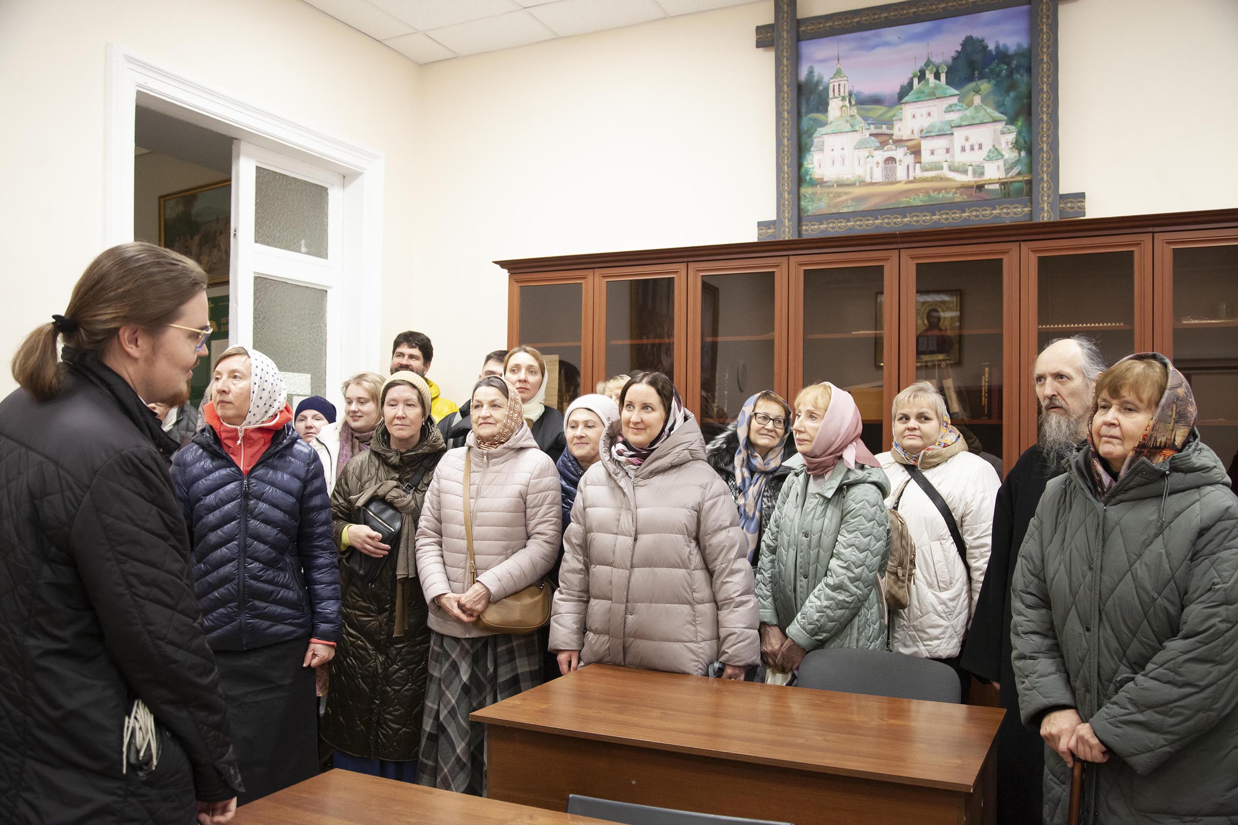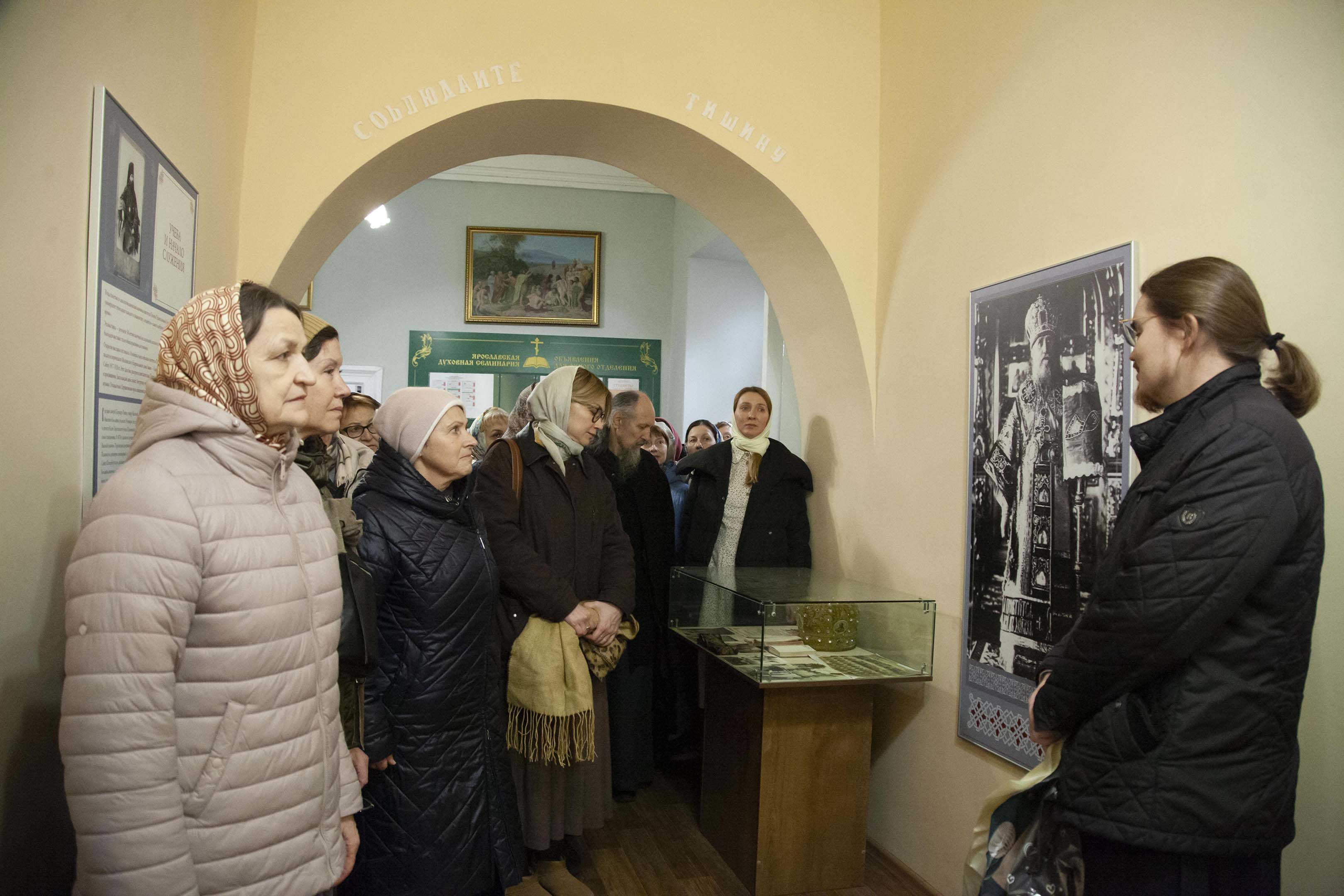 Затем гости познакомились с Ярославской духовной семинарией. Знакомство с семинарией началось с небольшого рассказа о студенческой жизни и особенностях обучения. Паломники посетили музейную экспозицию, которая рассказывает об истории Ярославской епархии. Недавно экспозиция пополнилась передвижной выставкой «Кто ны разлучит от любве Божия», посвященной жизни и служению святителя Тихона и разработанной Свято-Тихоновским гуманитарным университетом.  Сретенские паломники стали первыми посетителями нашей духовной школы, которым была проведена экскурсия по передвижной выставке. Экскурсию по Ярославской духовной семинарии для гостей провел ректор иеромонах Платон (Кудласевич). В семинарии паломники посмотрели аудитории, в которых обучаются студенты, посетили семинарский храм в честь священномученика Арсения (Мацеевича), основателя ярославской духовной школы.