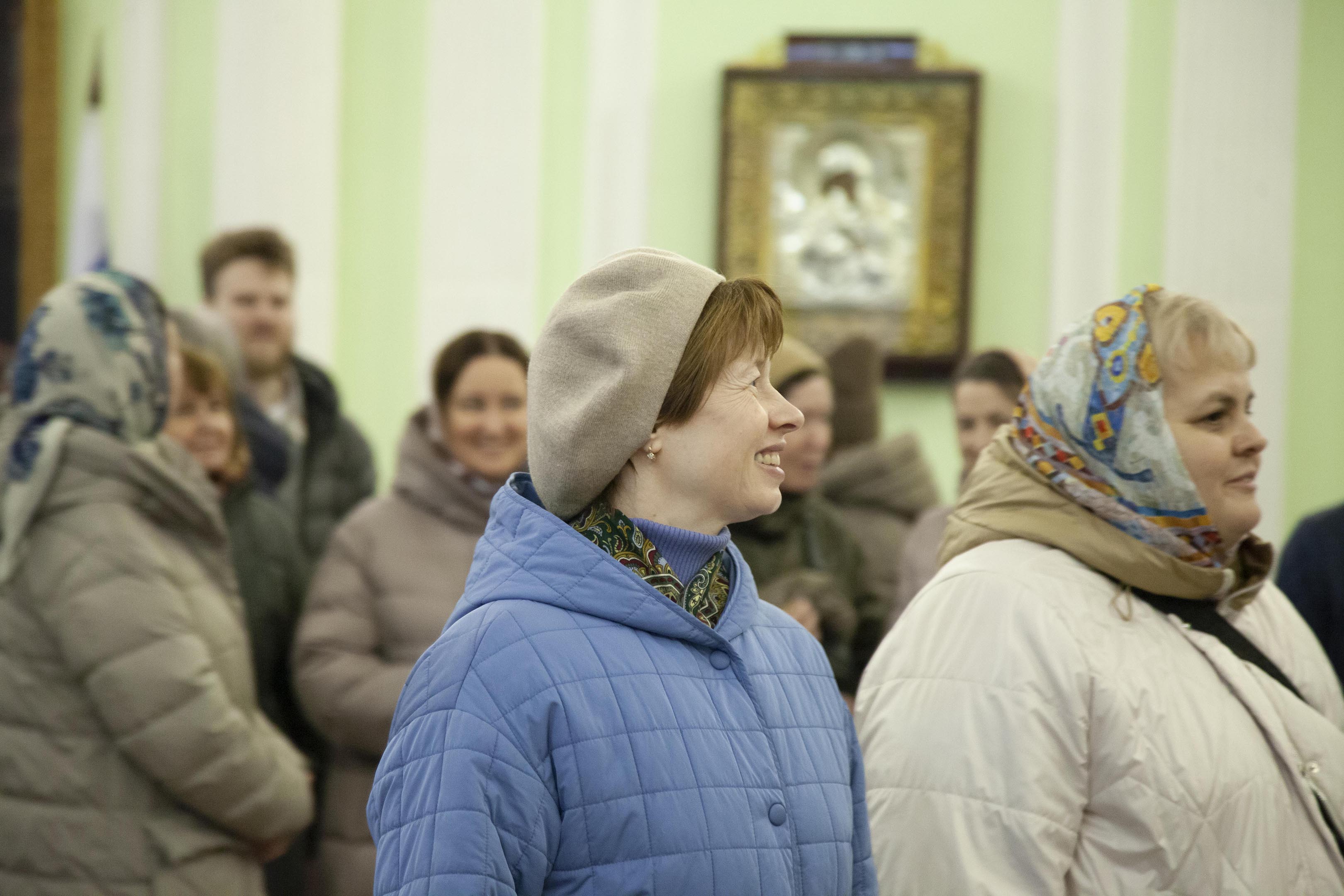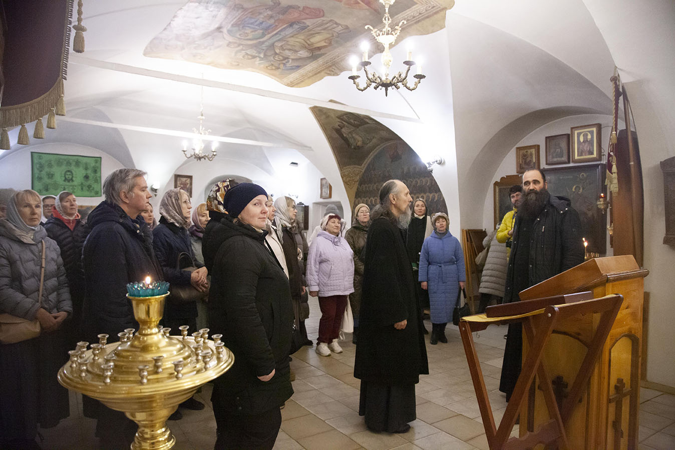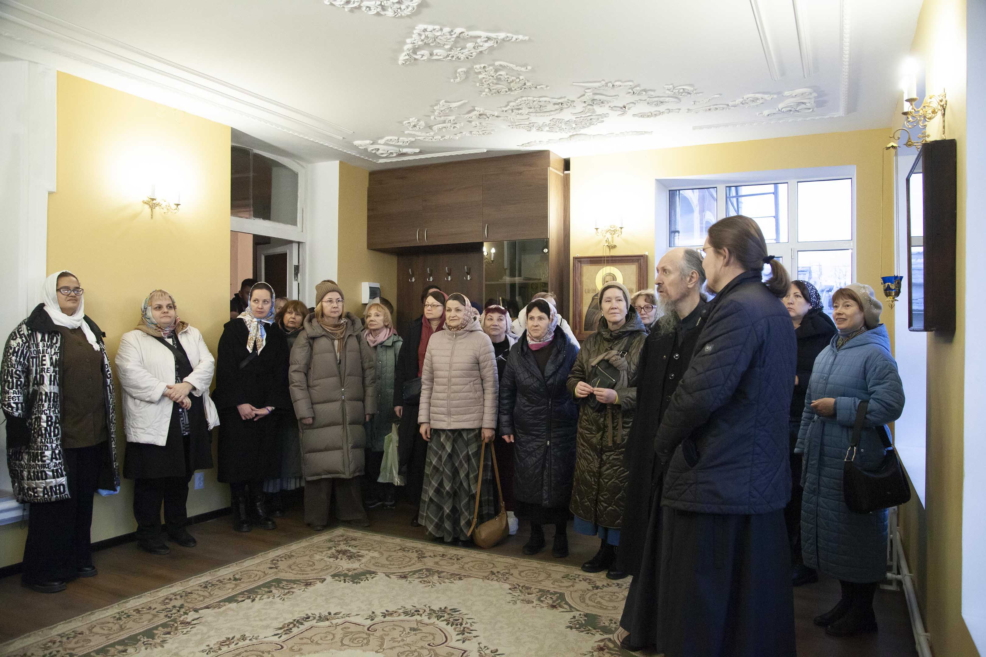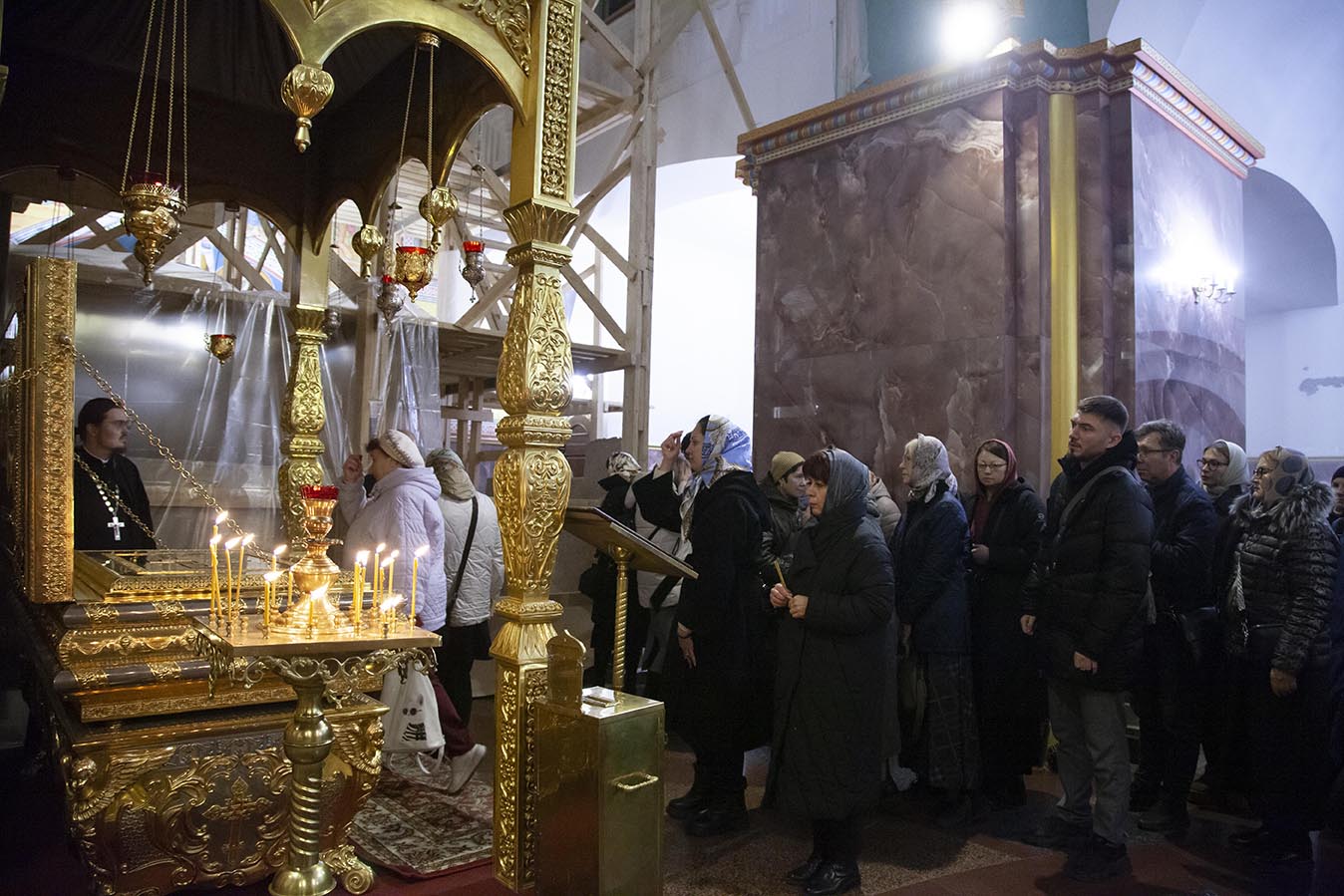 После экскурсии по семинарии гости прогулялись по набережной Волги до Успенского кафедрального собора. В кафедральном храме паломники помолились у мощей святых благоверных князей Феодора, Давида и Константина, благоверных князей Василия и Константина. Игумен Киприан (Партс), насельник Сретенской обители, помазал паломников маслом от лампады от раки святых благоверных князей.