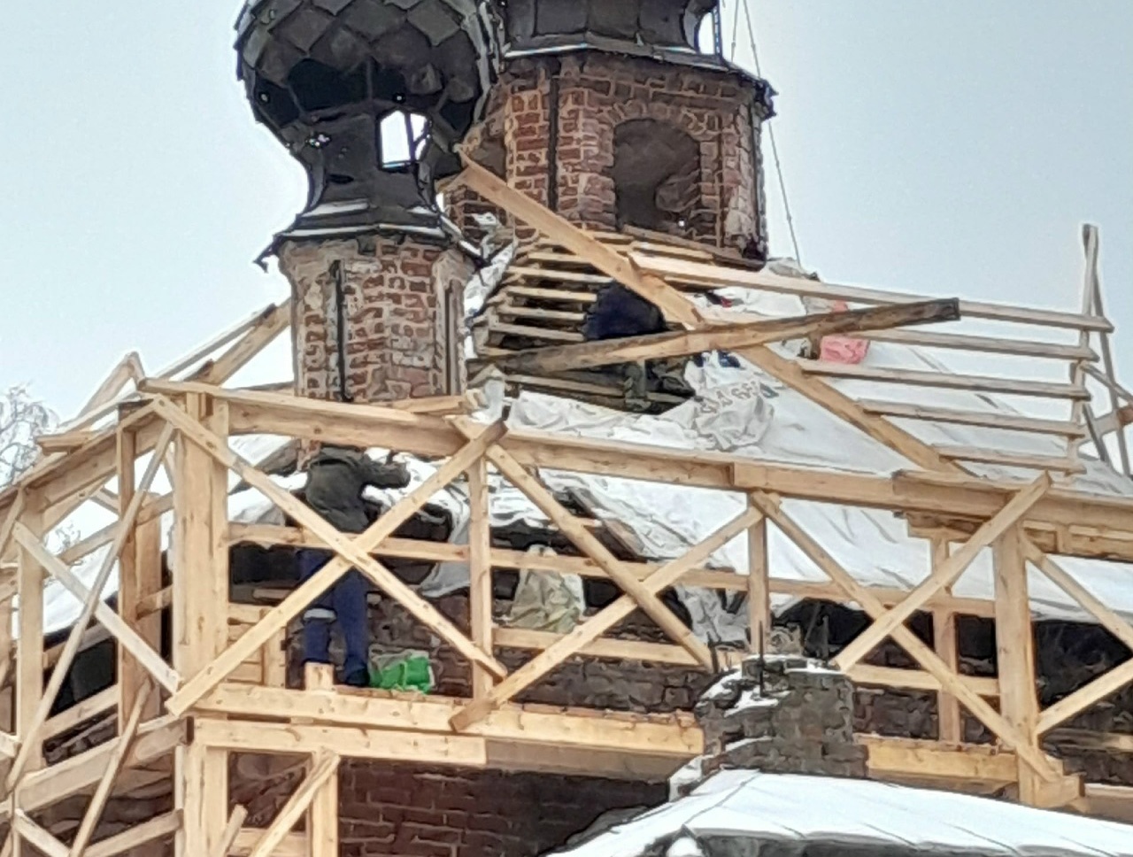ПРОДОЛЖАЮТСЯ ВОССТАНОВИТЕЛЬНЫЕ РАБОТЫ В КРЕСТОВОЗДВИЖЕНСКОМ ХРАМЕ С. СИДОРКОВО (СЕЛИФОНТОВО)