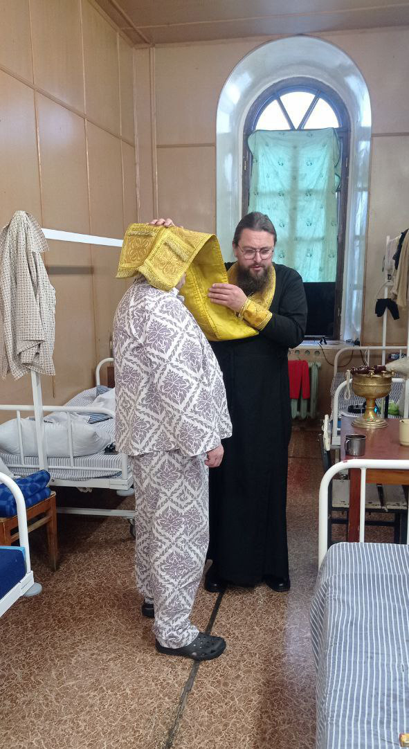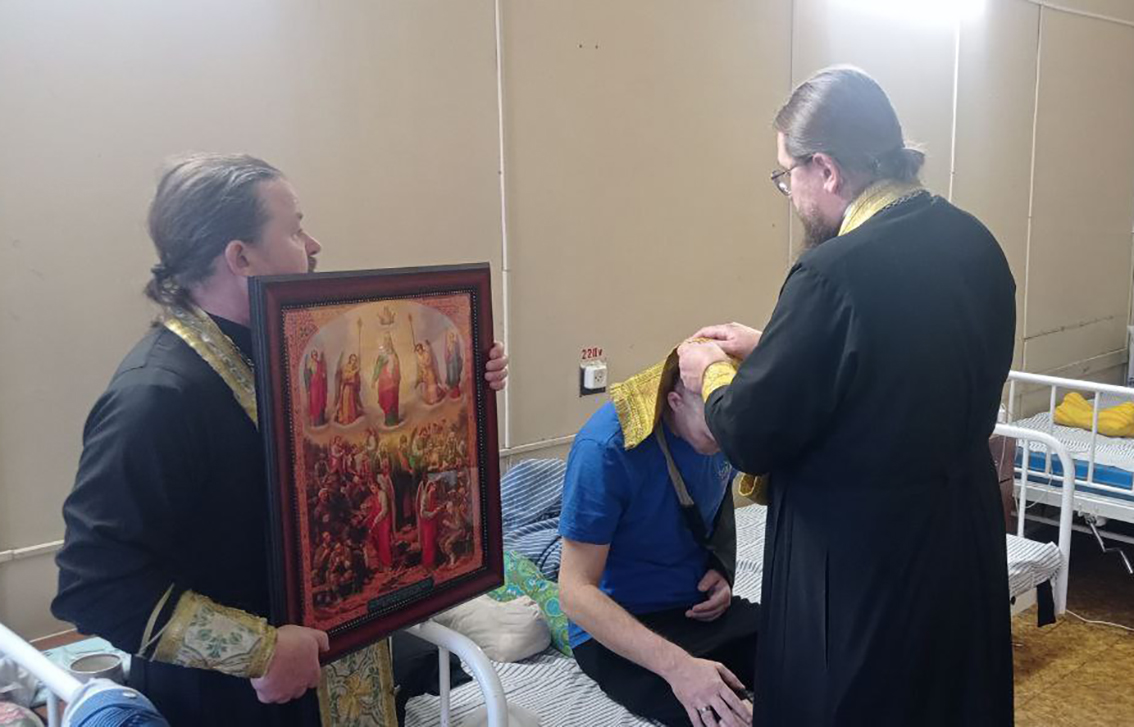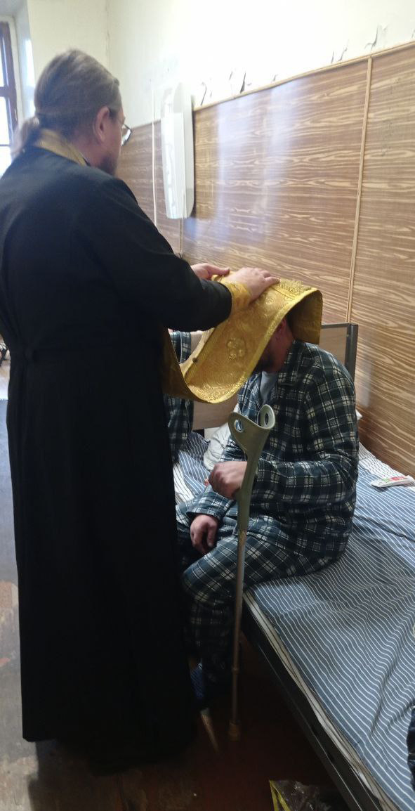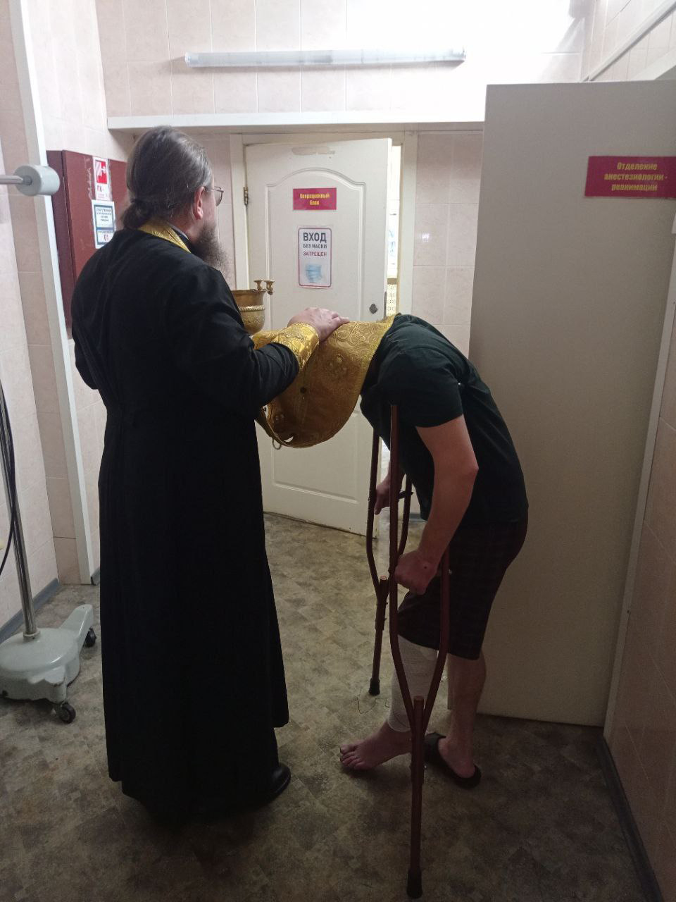 Священнослужители поприветствовали пациентов и пообщались с ними. Более 30 бойцов поисповедовались, многие из них стали готовиться к принятию Святых Христовых Таин.