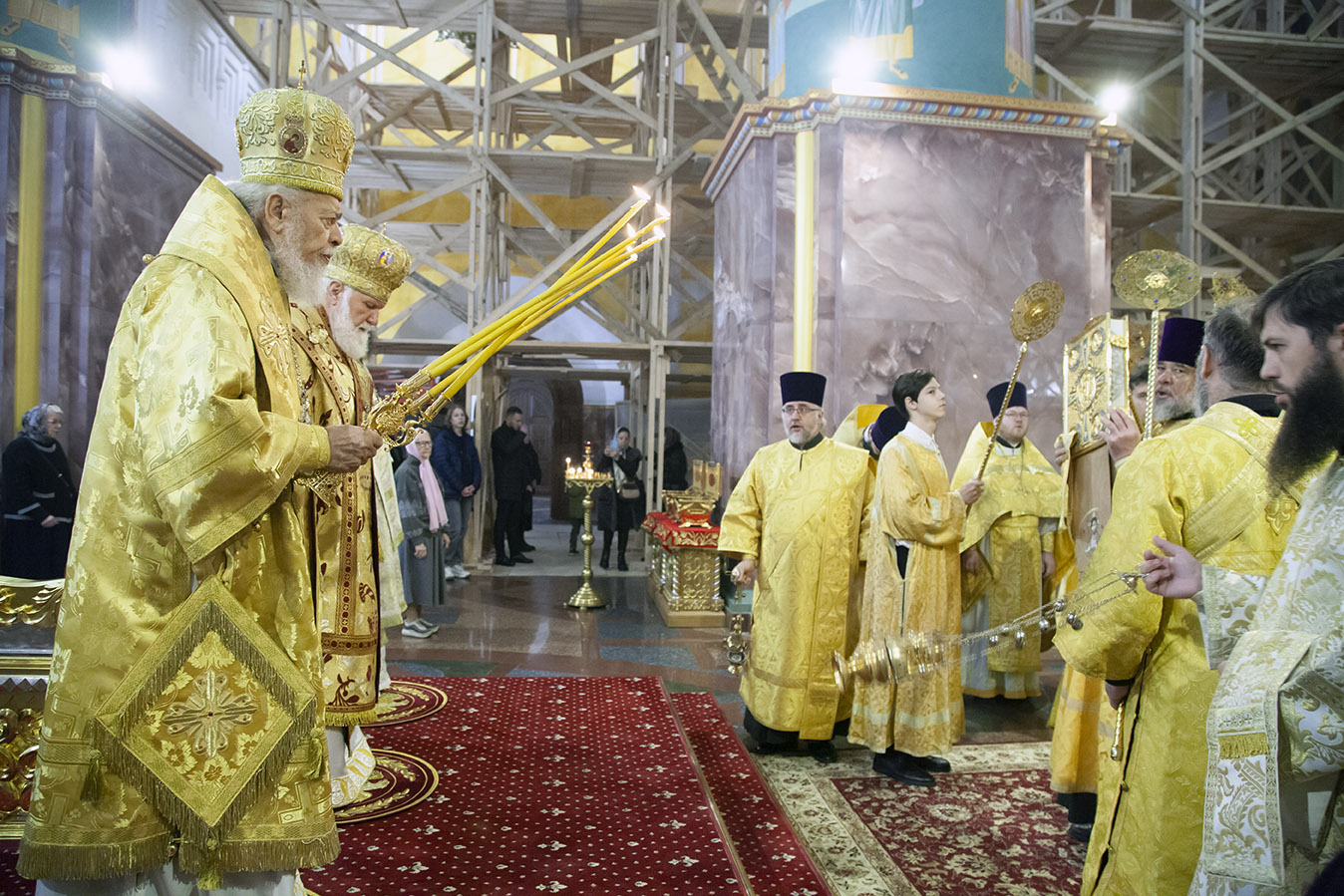 9 ноября 2025 года, в неделю 22-ю по Пятидесятнице, в Успенском кафедральном соборе г. Ярославля Божественную литургию совершили митрополит Филиппопольский Нифон, митрополит Ярославский и Ростовский Вадим и митрополит Волгоградский и Камышинский Феодор.