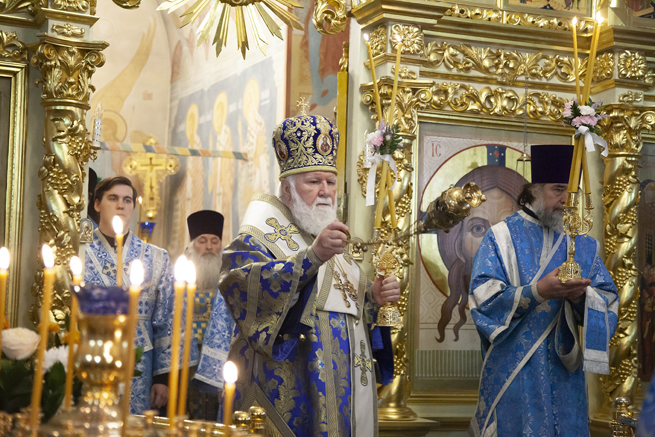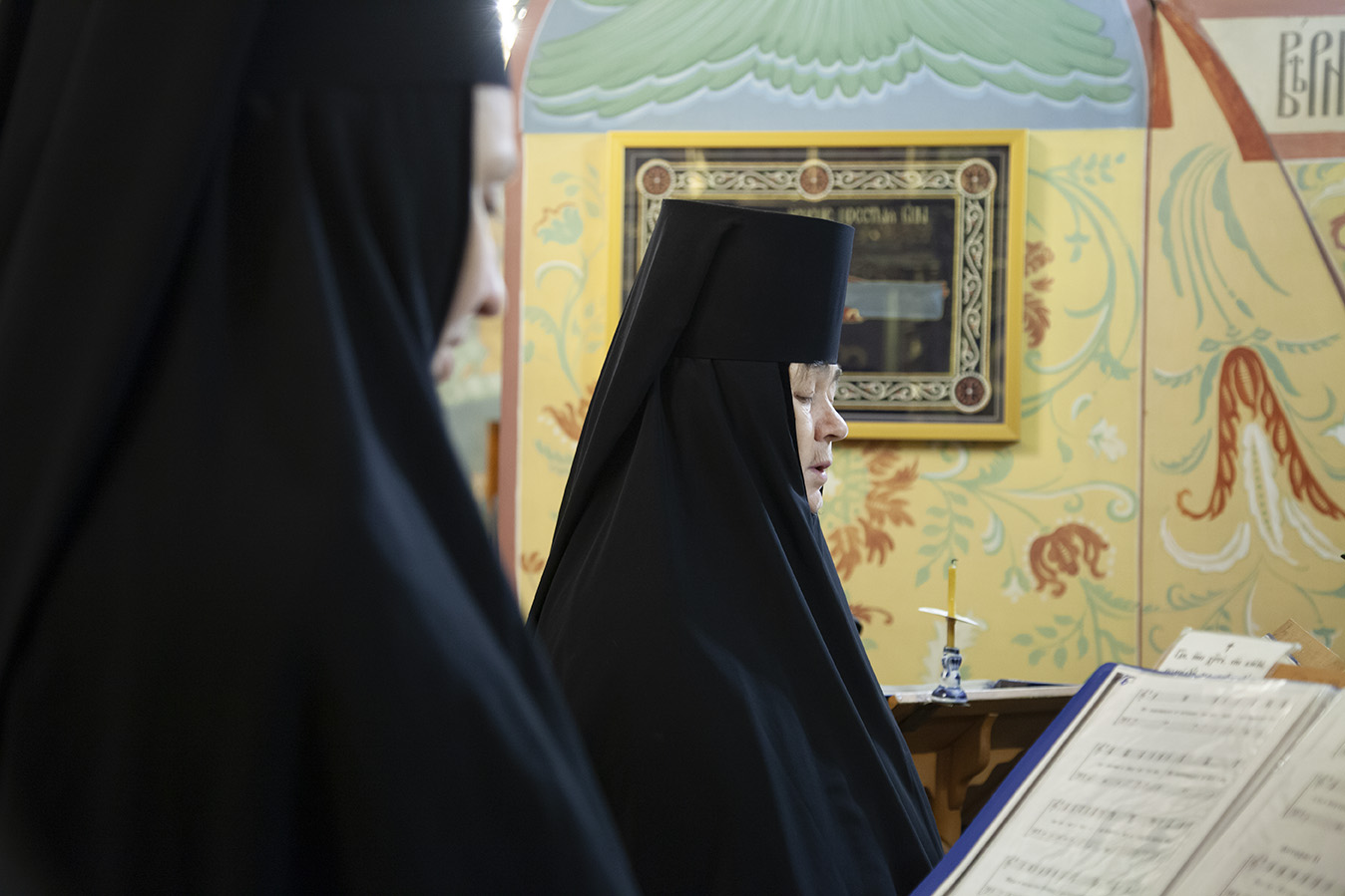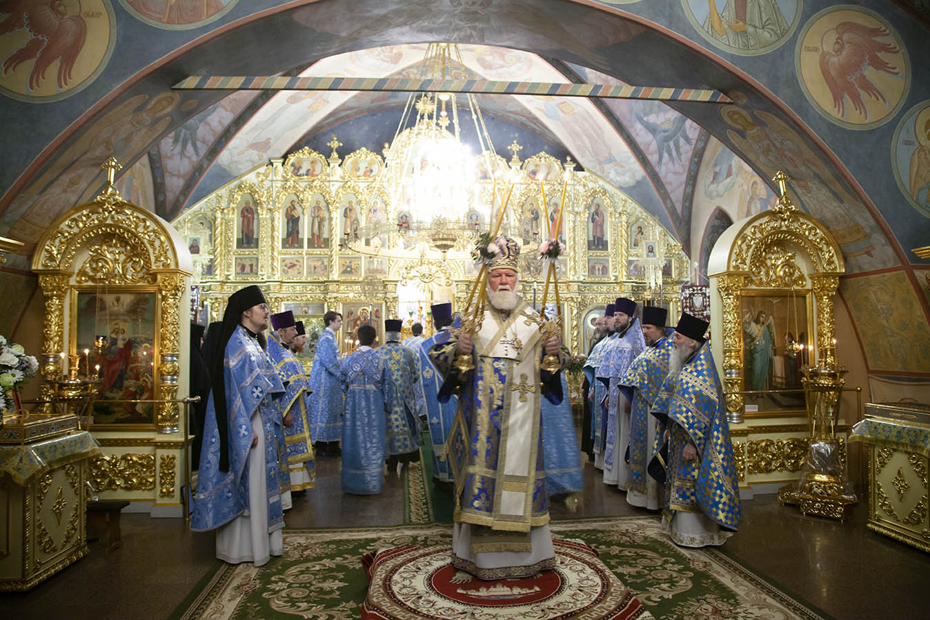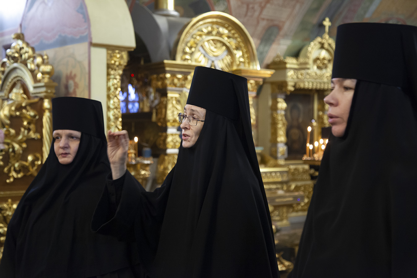 После Литургии владыка митрополит вместе с духовенством, настоятельницей монастыря игуменией Варварой, сестрами обители и паломниками совершили славление празднику.