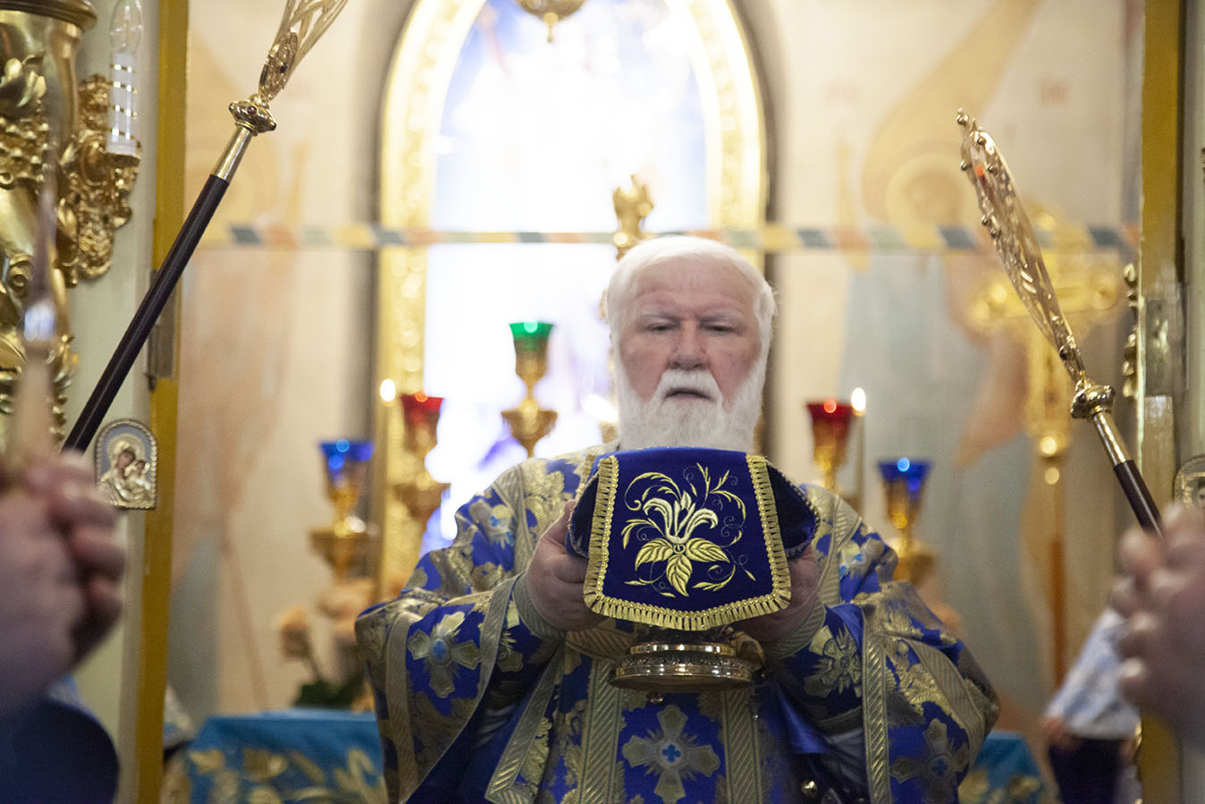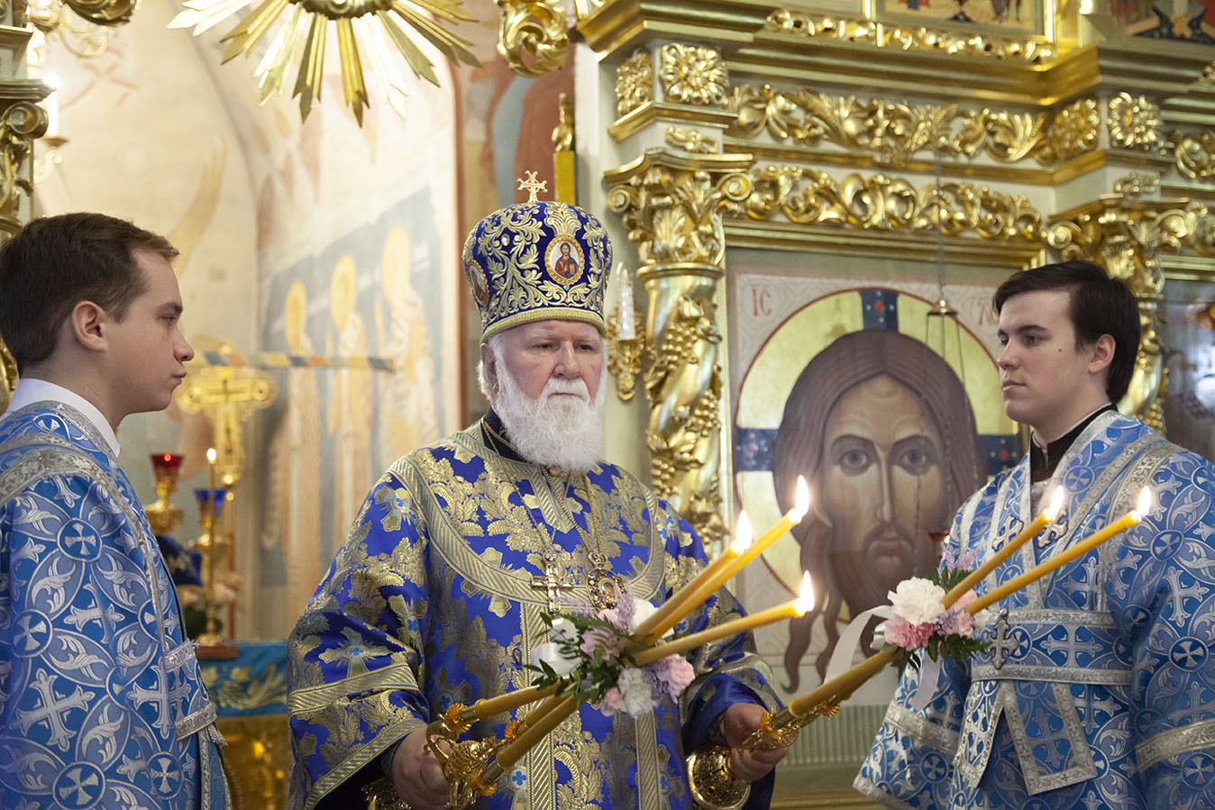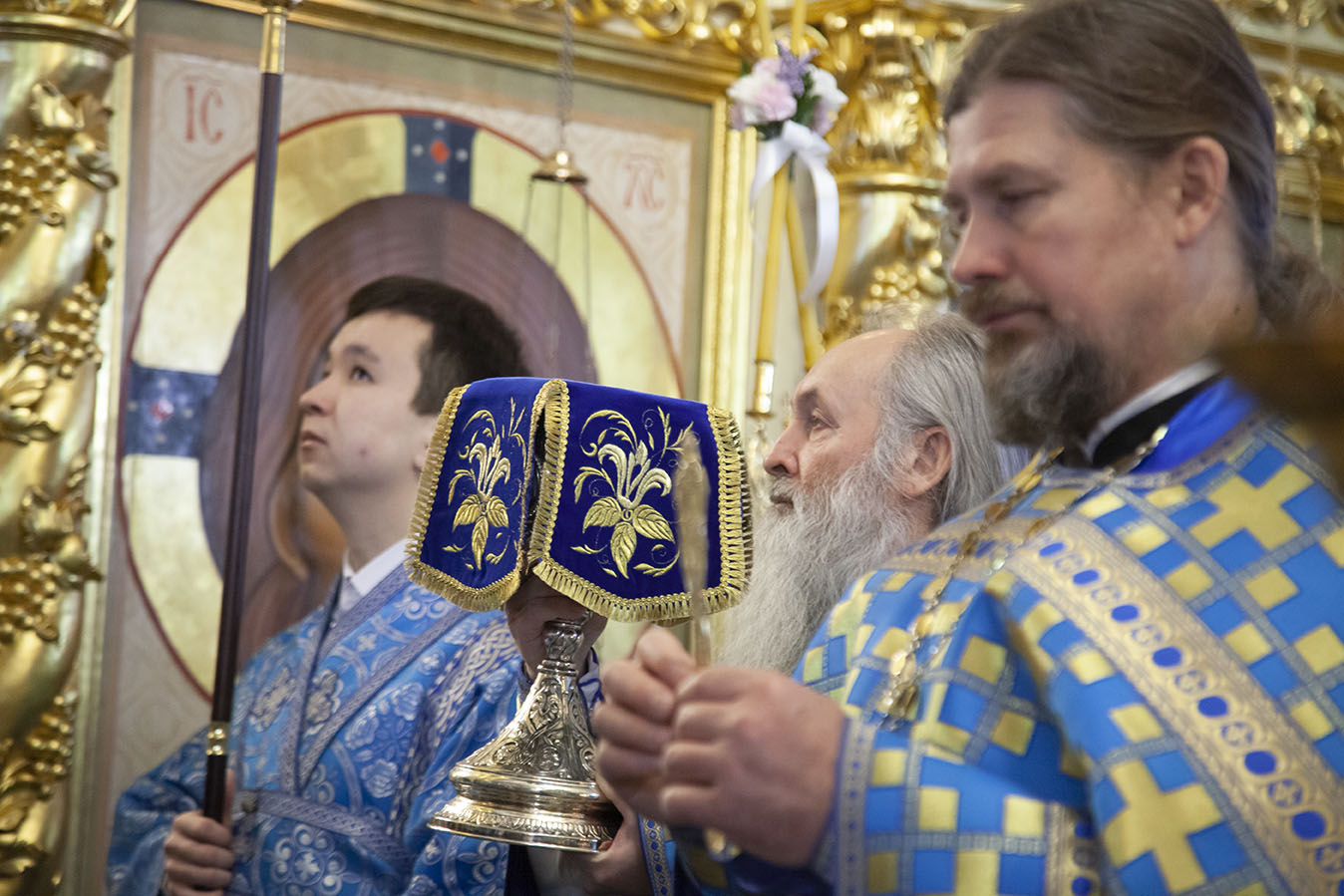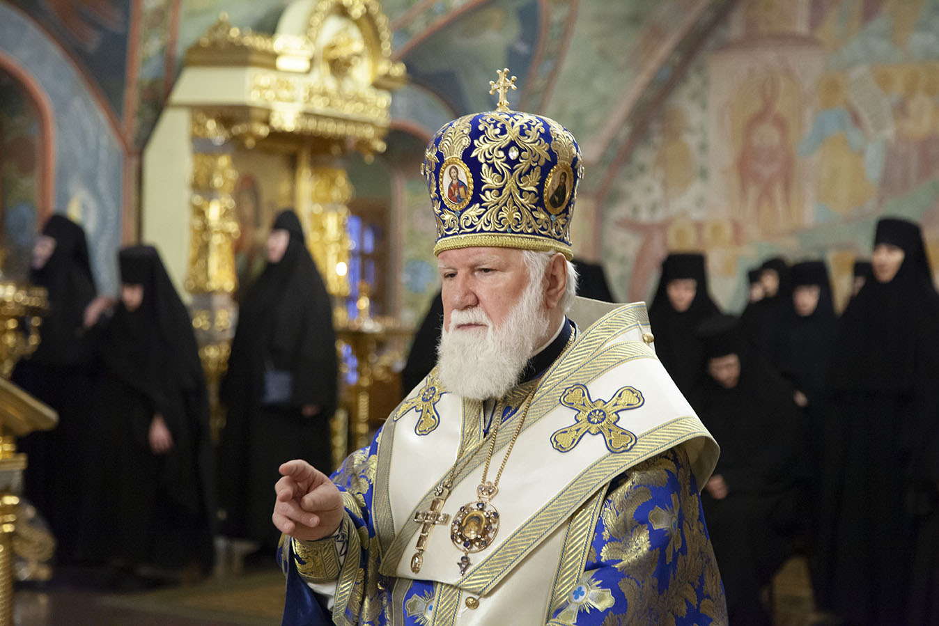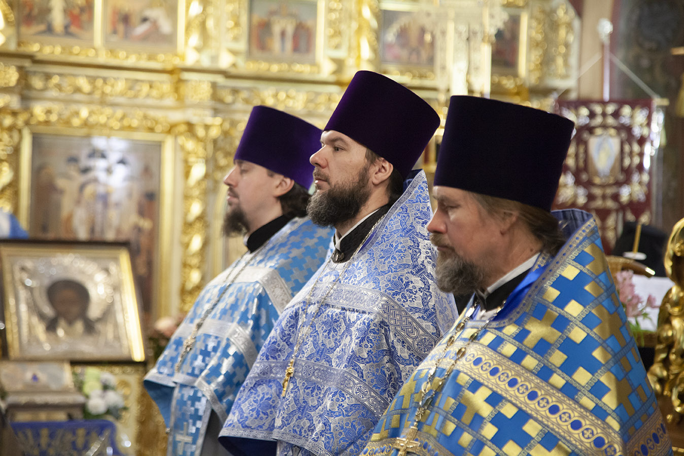 После Литургии владыка митрополит вместе с духовенством, настоятельницей монастыря игуменией Варварой, сестрами обители и паломниками совершили славление празднику.