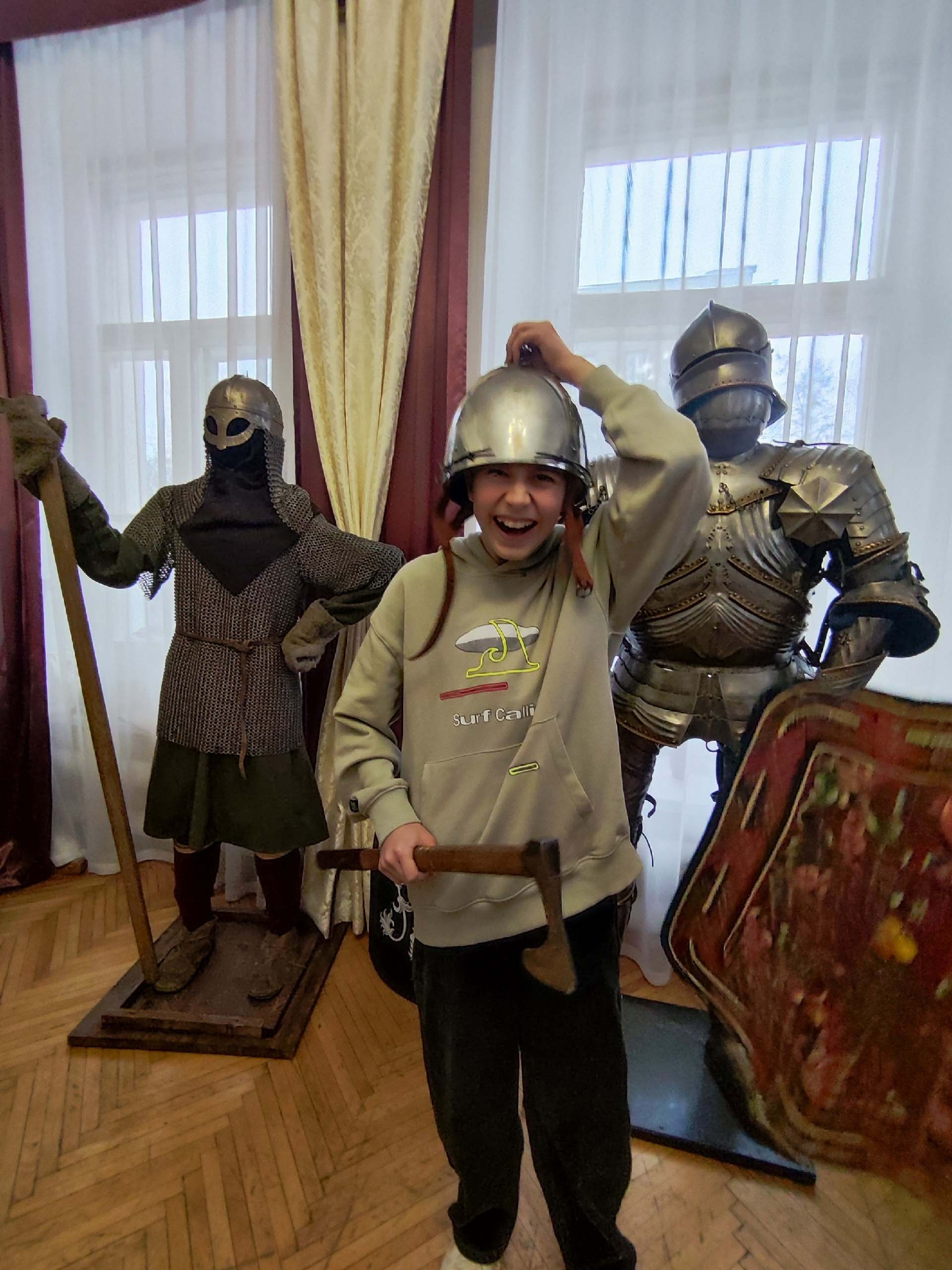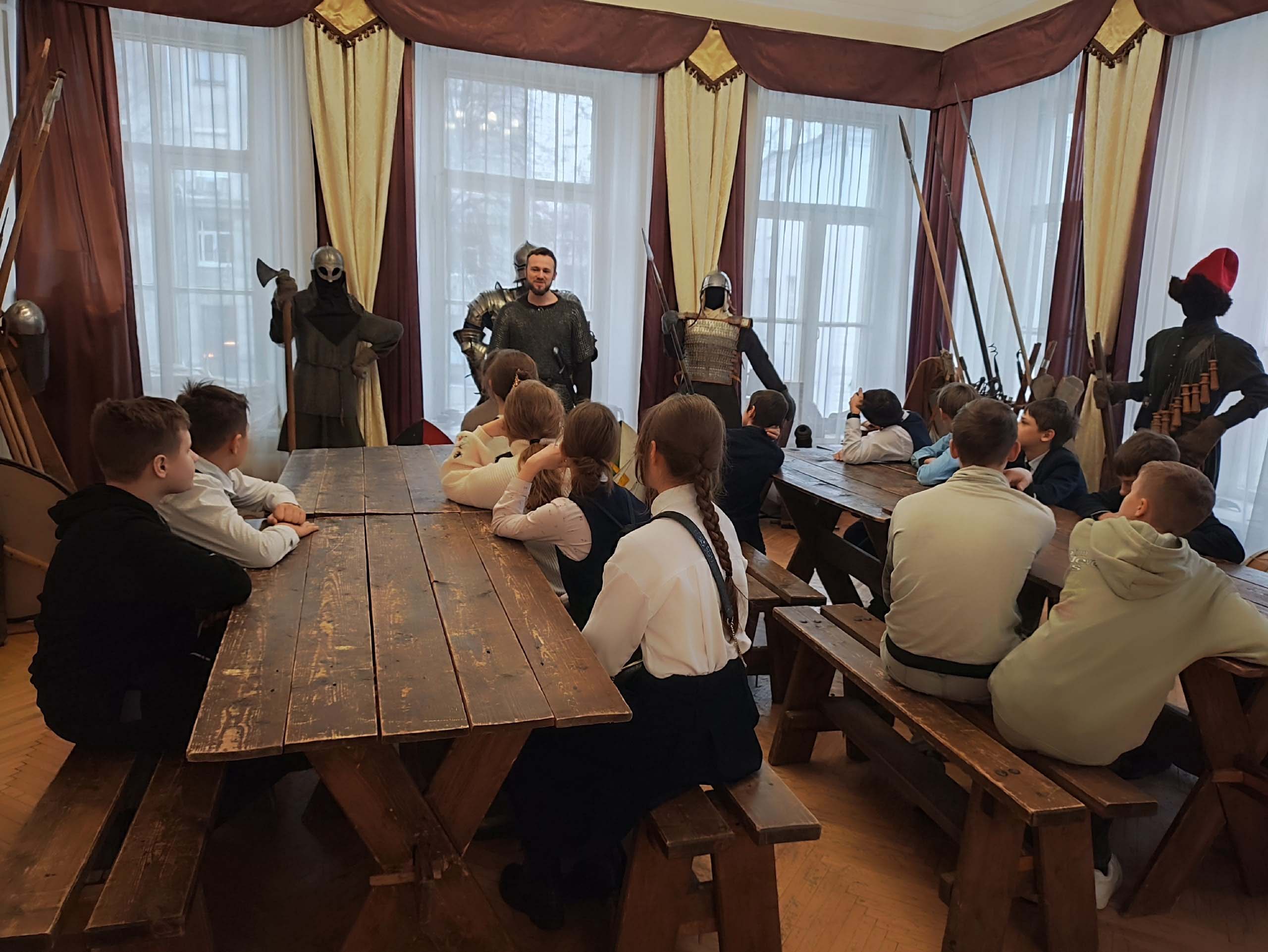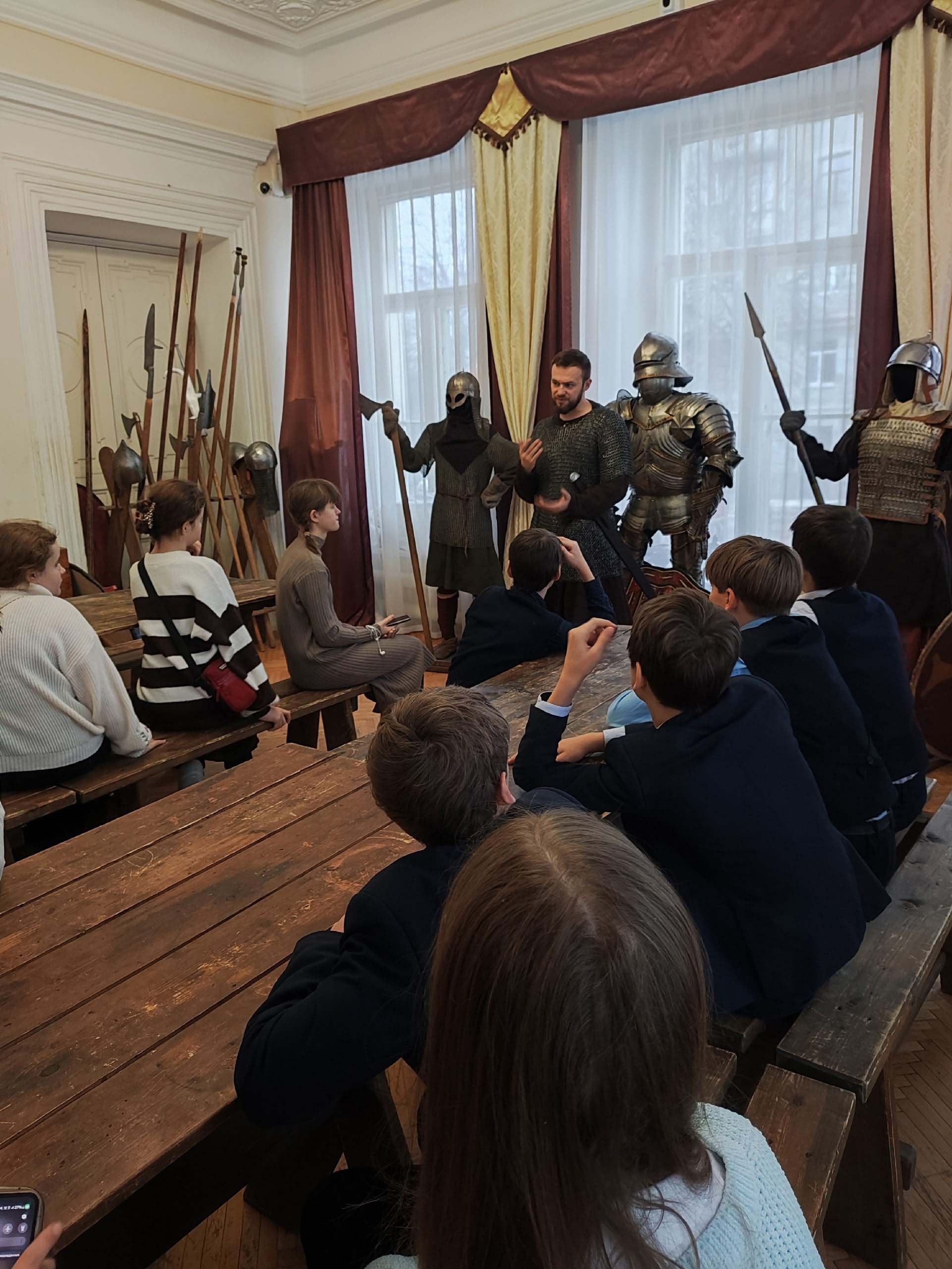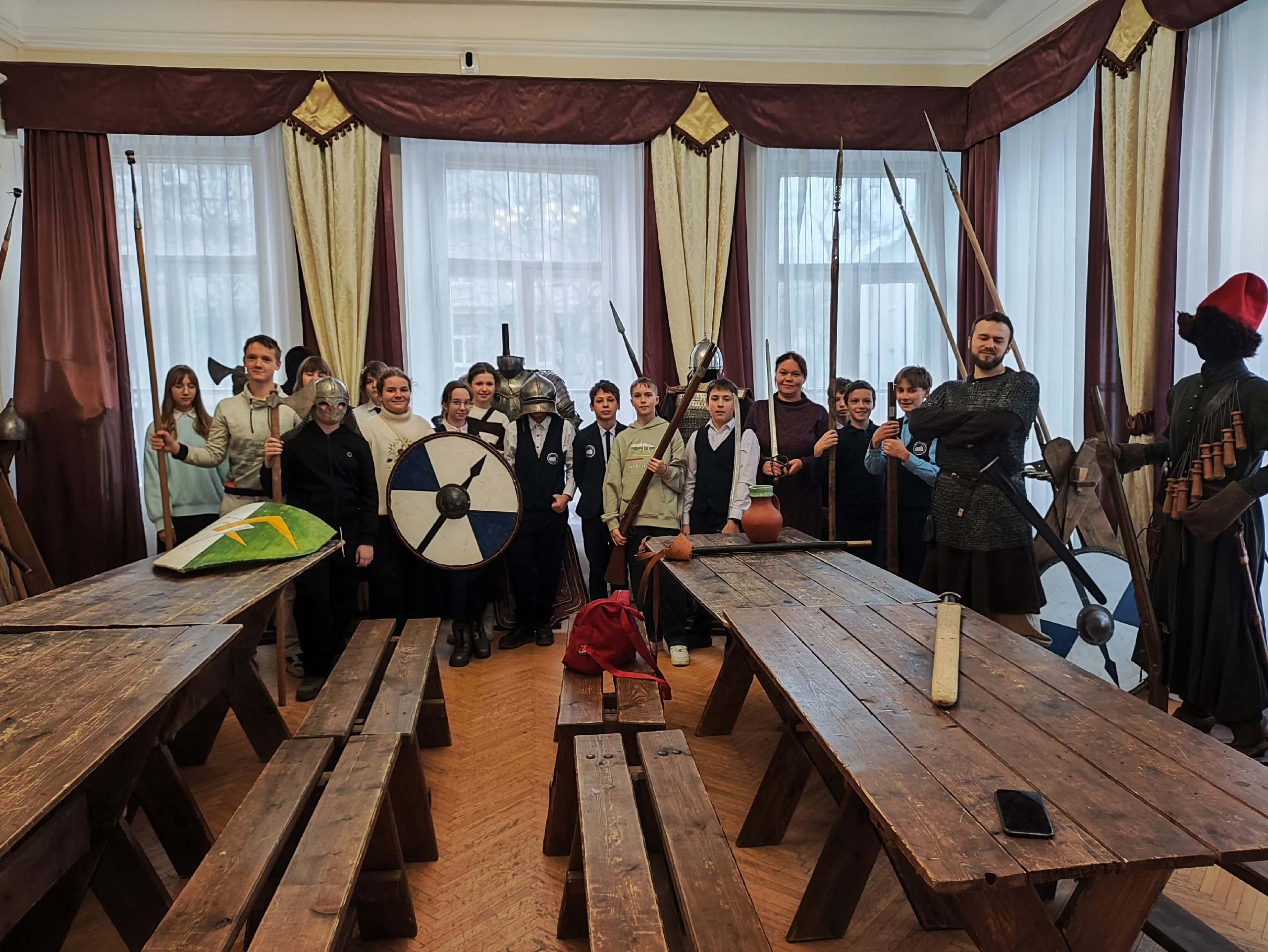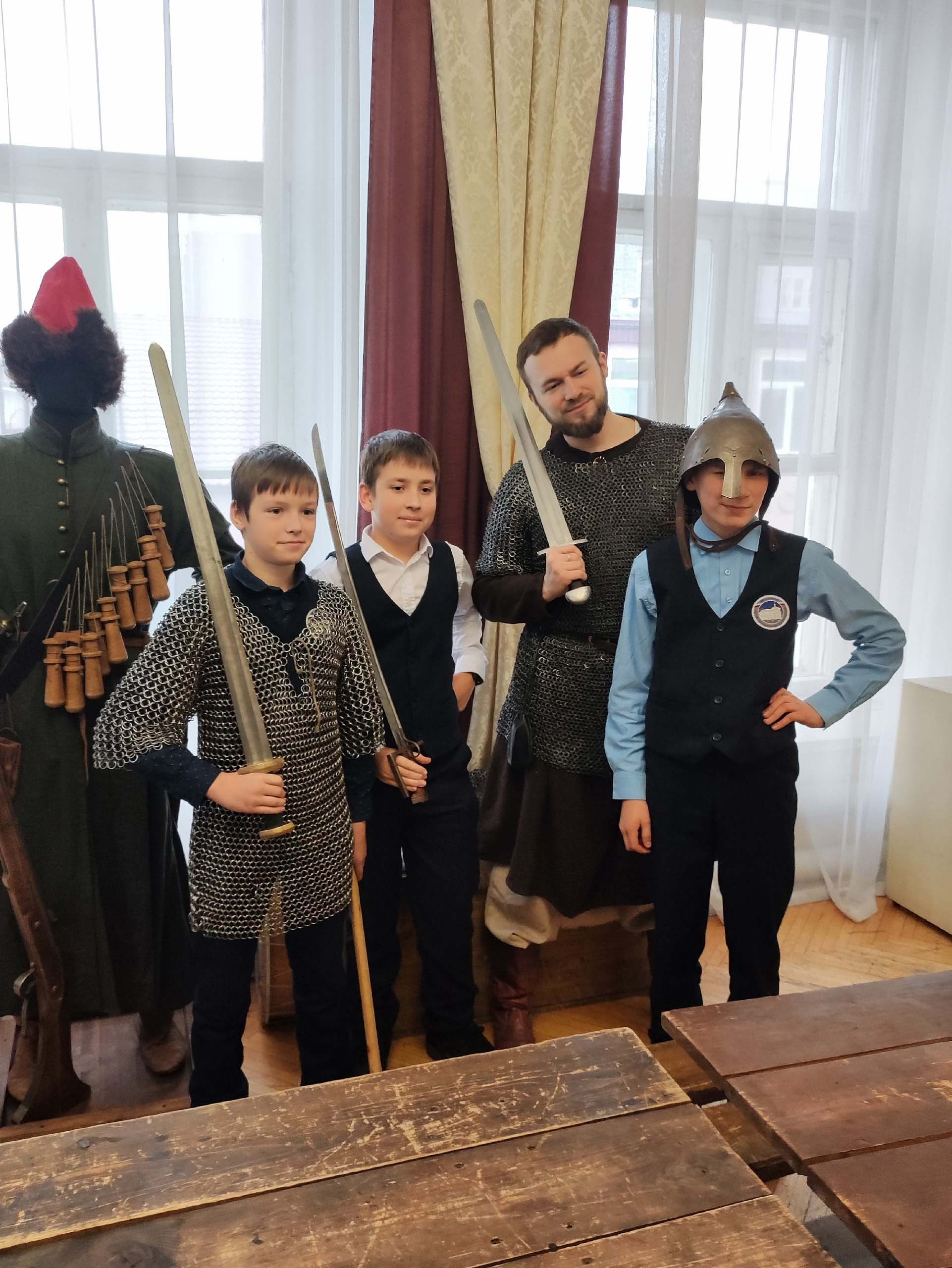 Музей располагается в самом центре Ярославля, в Центре патриотического воспитания. Оказавшись в мире живой истории, гимназисты примерили доспехи и шлемы, а также послушали интересную экскурсию. Экспонаты музея являются точными копиями оружия, которое использовалось начиная с Древней Руси и до Смутного времени. Особенность музея в том, что все предметы можно потрогать и примерить.