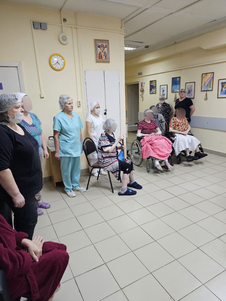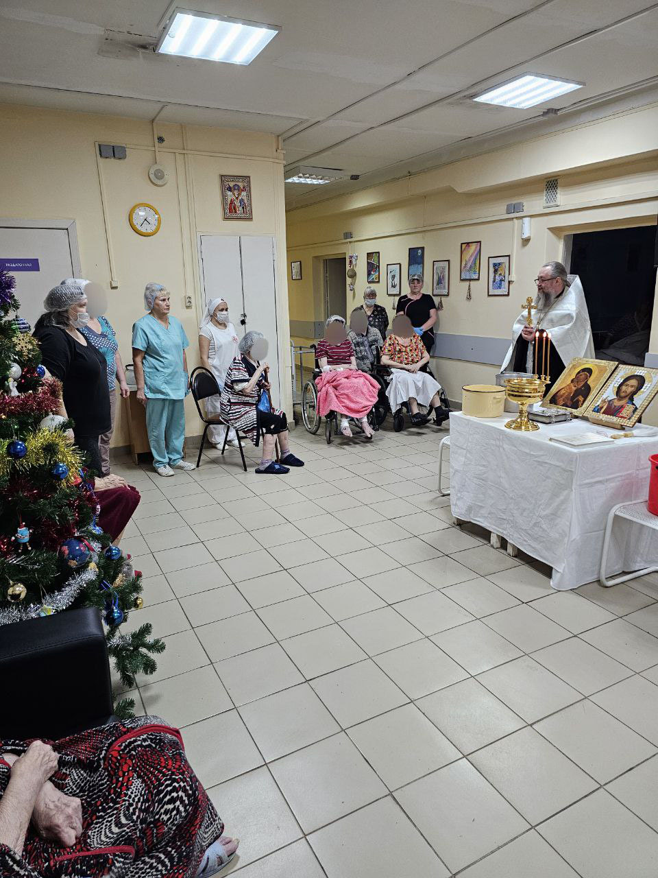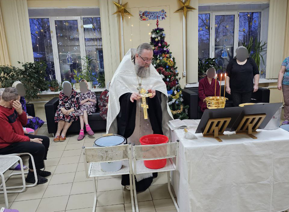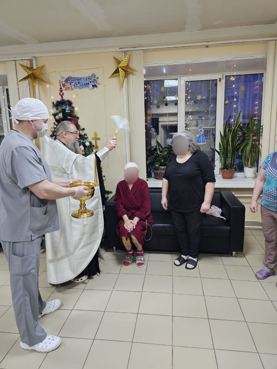 На богослужение также были доставлены пациенты Отделения сестринского ухода. Крещенское водоосвящение стало уже доброй традицией для больницы им. Семашко. После водосвятия отец Агафангел рассказал о значении праздника Крещения Господня и окропил всех пациентов святой водой.