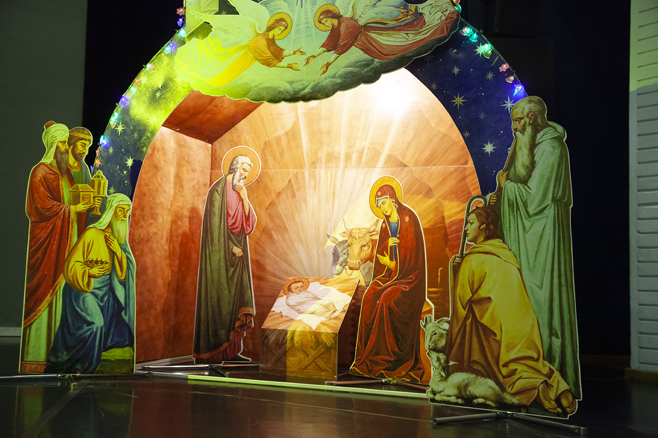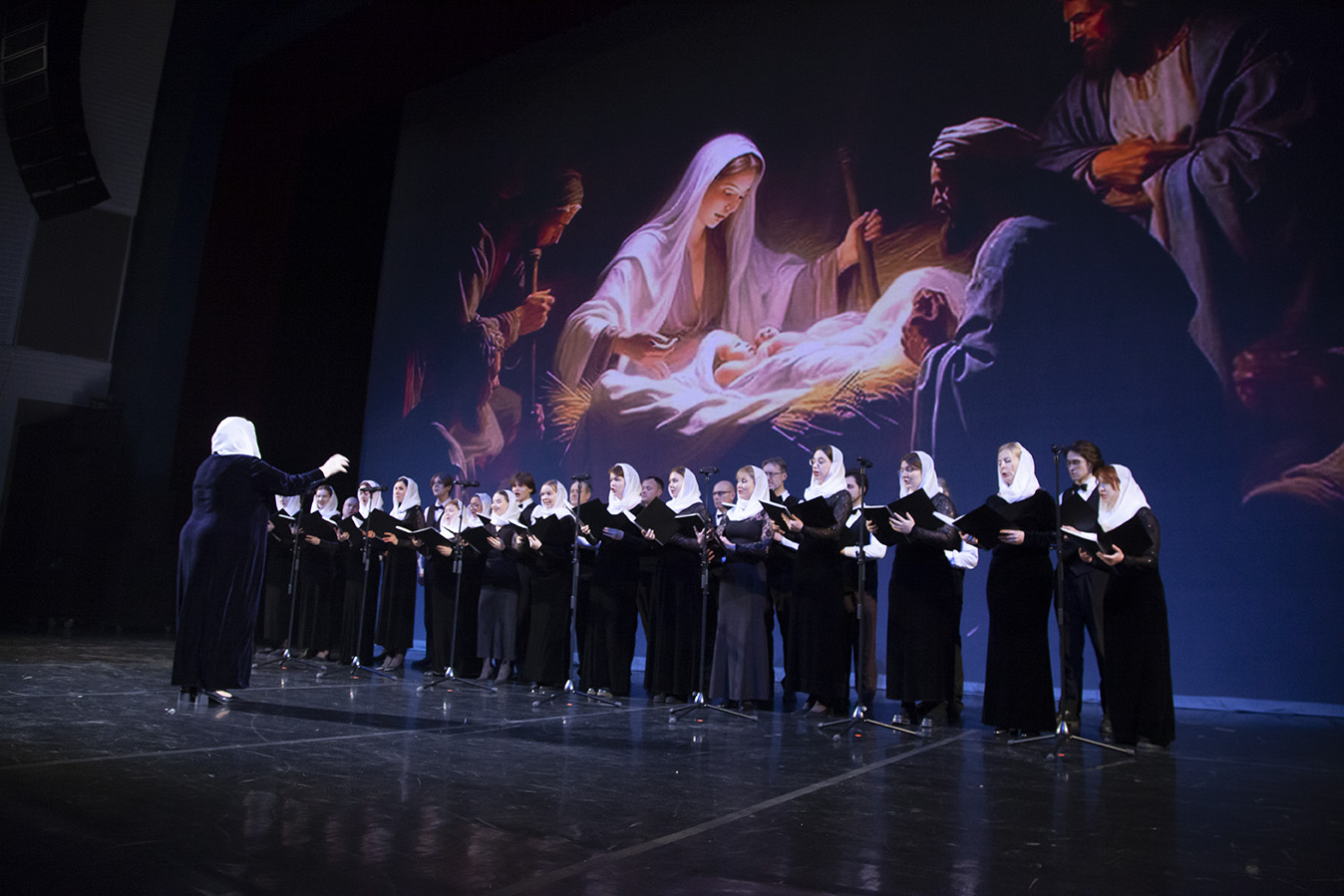 В самом начале праздничного вечера в исполнении хора молодежного движения Рыбинской епархии «Преображение» прозвучали тропарь и кондак праздника Рождества Христова.