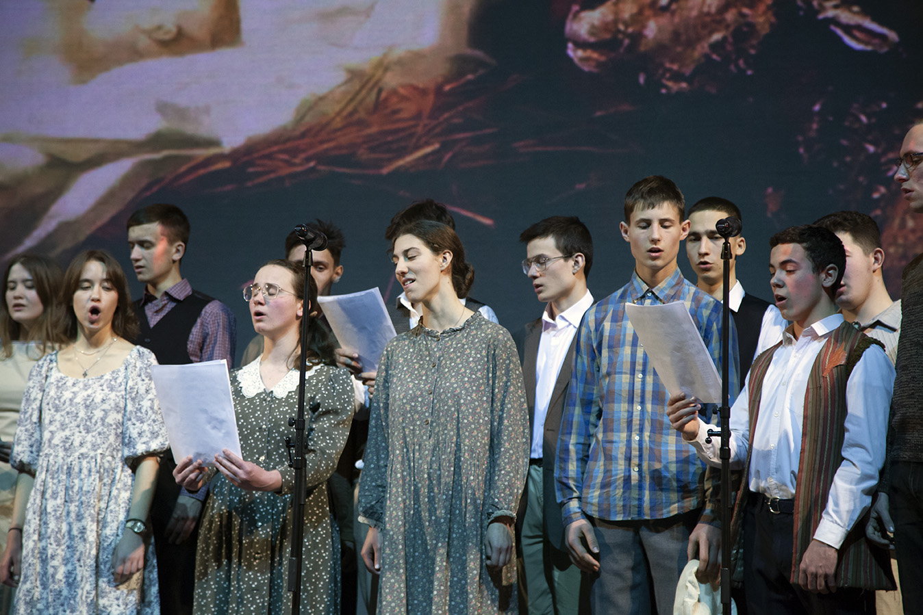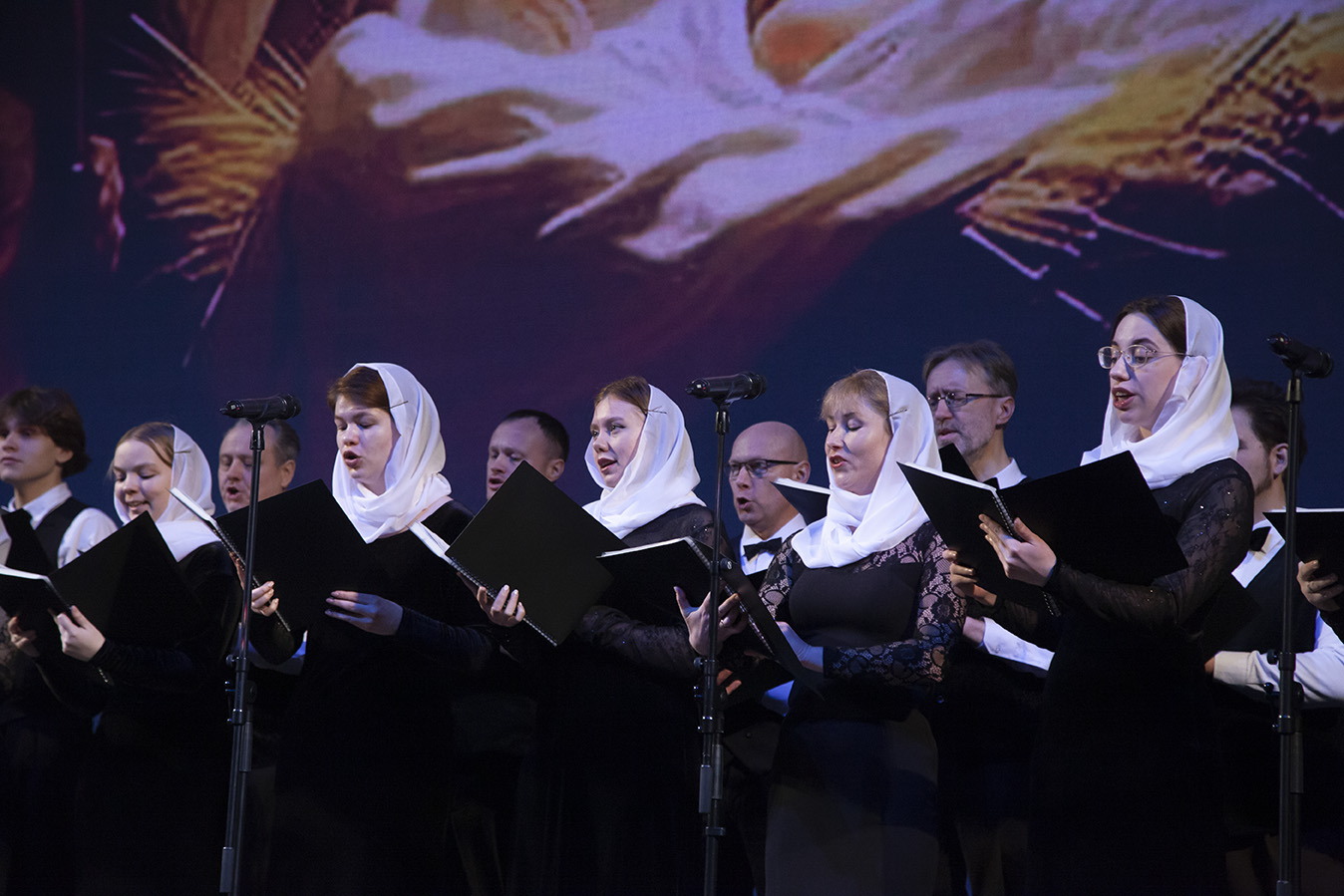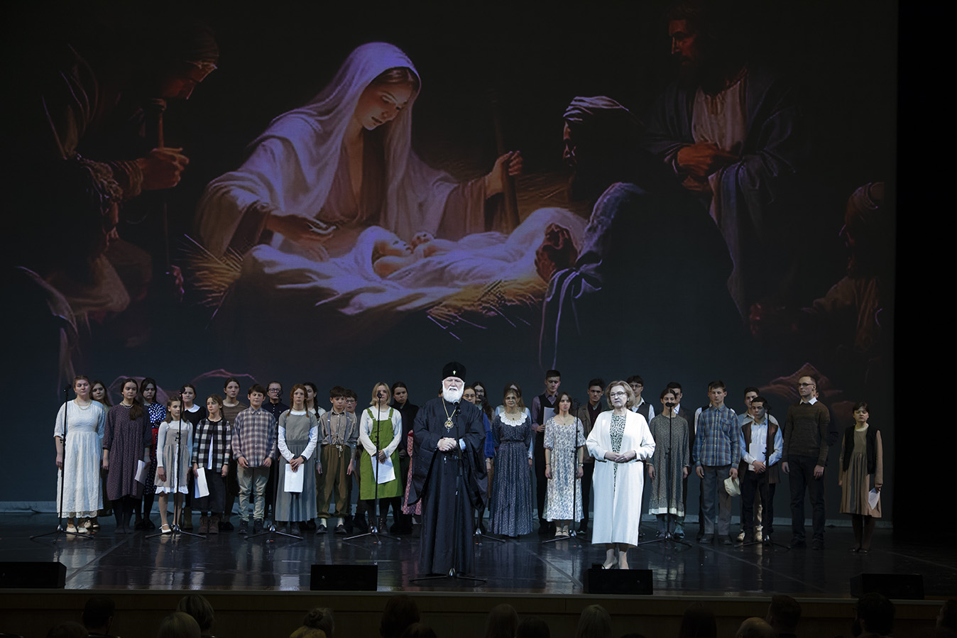 Концертную программу продолжил хор молодежного движения Рыбинской епархии «Преображение» с юными чтецами учебного театра «Надежда» Ярославского детского экологического центра «Родник» с музыкально-литературной композицией «Рождество Христово».