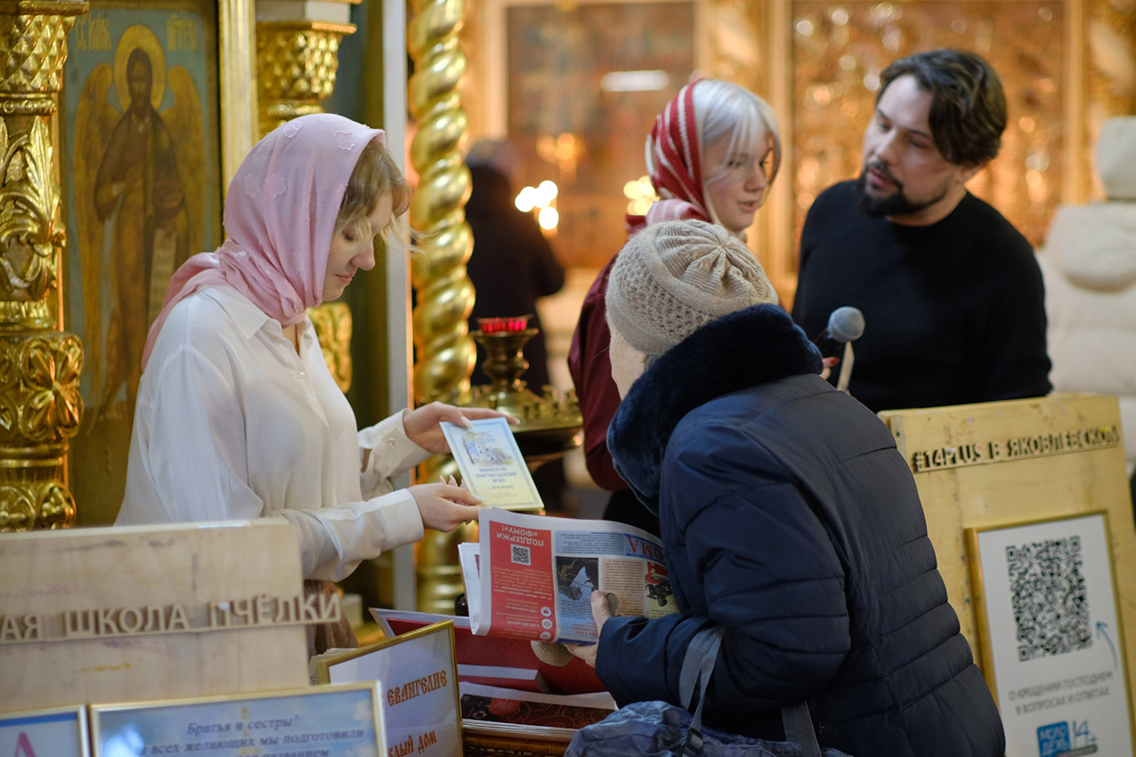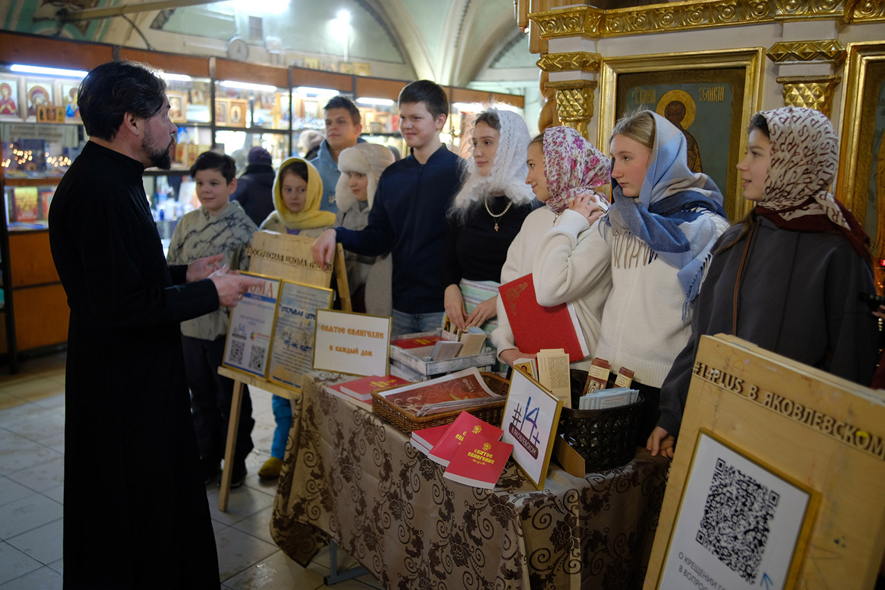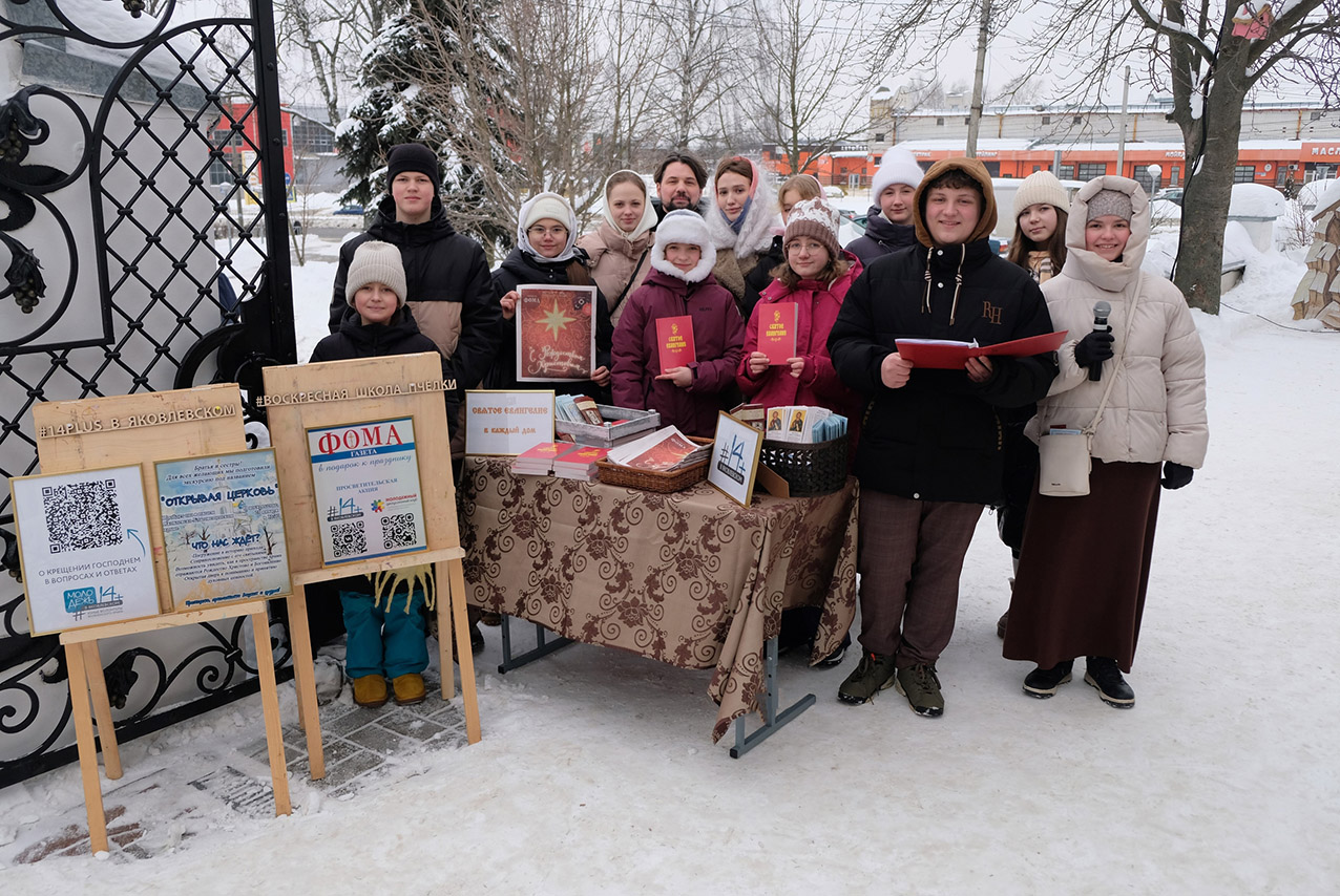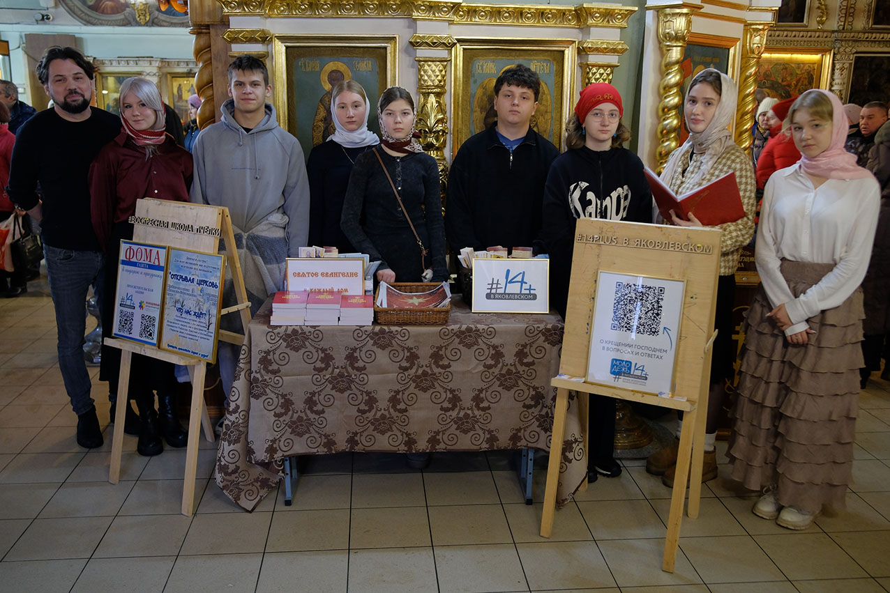 Любой человек мог пообщаться с молодыми людьми, взять подарок брошюру о Яковлевско-Благовещенском храме, закладки с молитвами и Рождественский номер газеты «Фома», в котором есть статья и о Богоявлении.