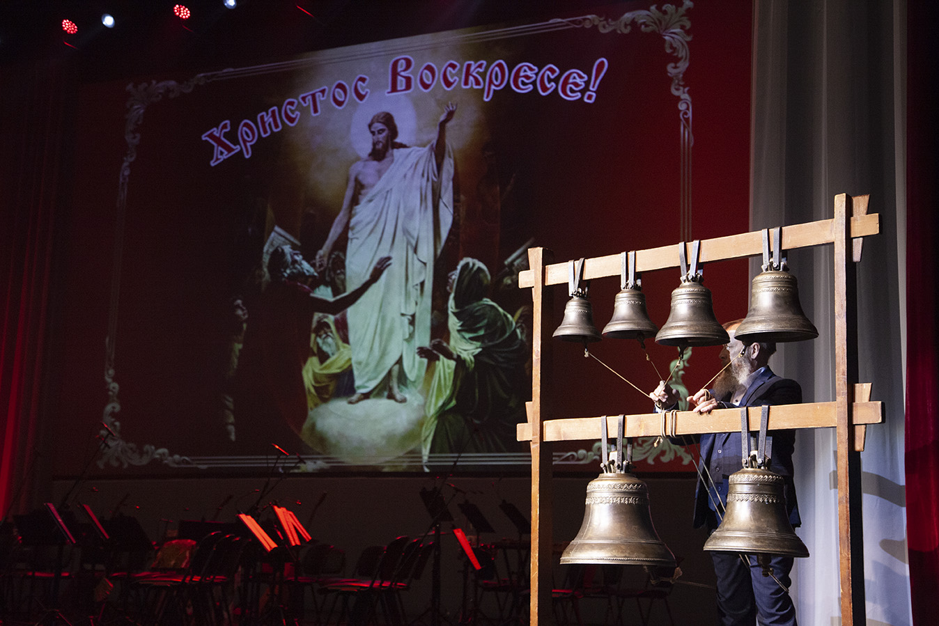 Атмосферу пасхального праздника создал пасхальный колокольный звон в исполнении старшего звонаря епархии Владимира Дегтярева.