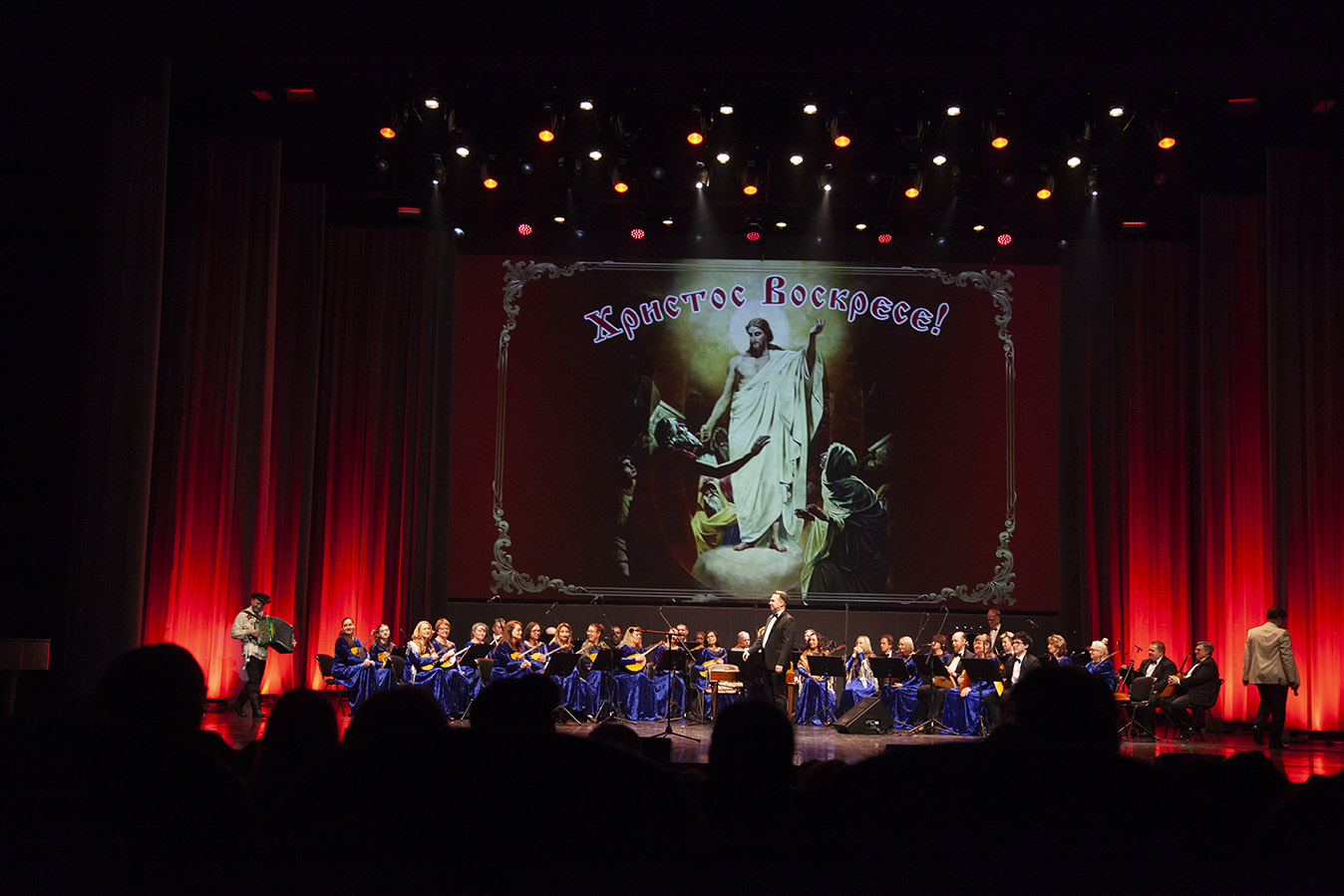 Праздничный вечер завершился выступлением образцового коллектива Ансамбля казачьей песни «Плетенька», который исполнил свадебную плясовую оренбургских казаков «Долина, долинушка», песню «Матушка Россия» и словословие «Христос Воскресе!».